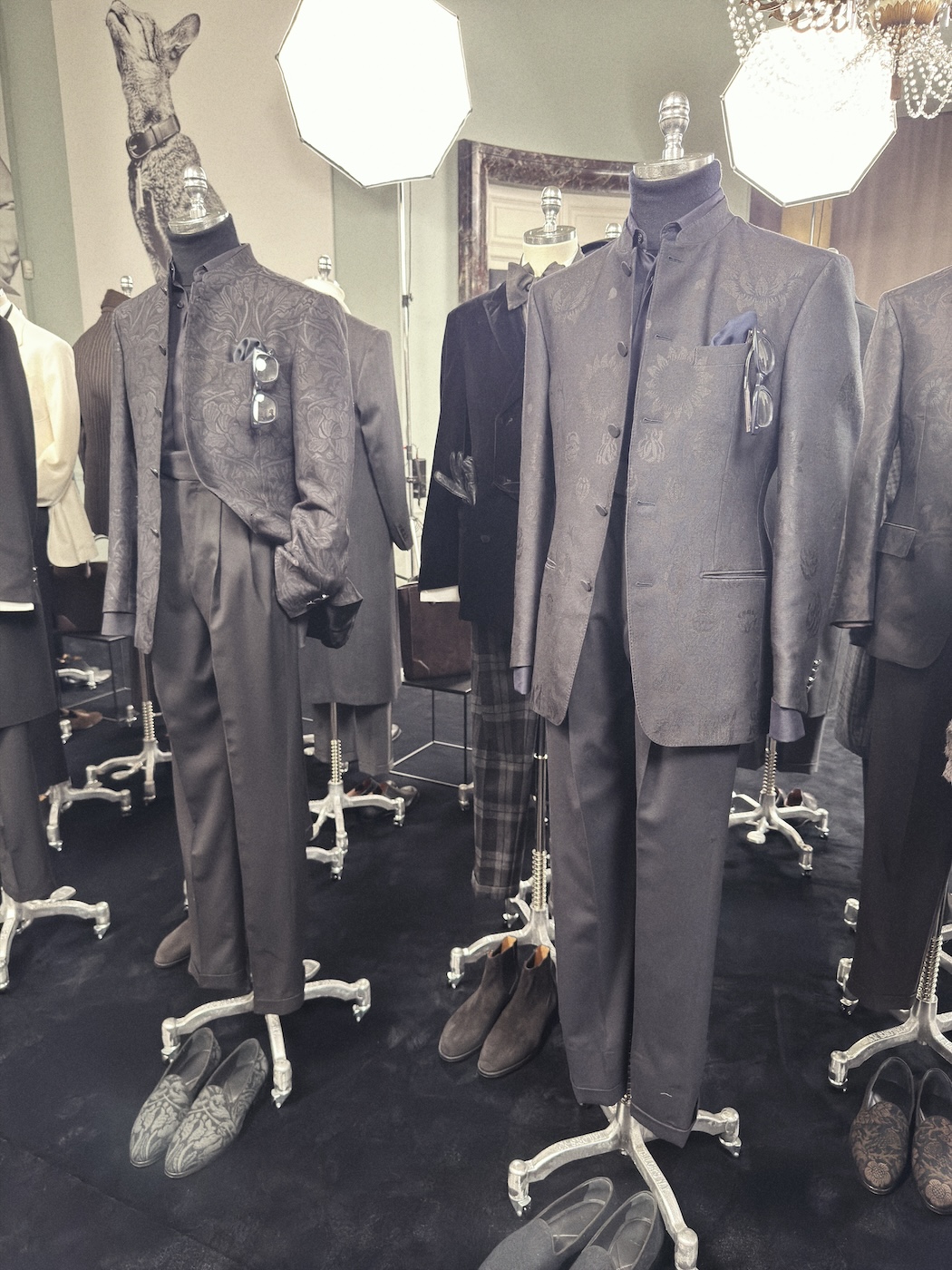 「エトロ(ETRO)」は、小さな部屋に頭部が動物になったマネキンをズラリと並べ、メンズ・コレクションを披露しました。そのインスピレーション源は、1997年に制作された同ブランドのキャンペーン「アニメン(ANIMEN、イタリア語ではANIMUOMINI)」。当時、モデルの頭に動物をハイブリッドしたビジュアルが強い印象を残したキャンペーンでした。それを「『エトロ』がメンズウエアの新しい章を開き、独自のアプローチを示し始めた瞬間だった」と捉えるクリエイティブ・ディレクターのマルコ・デ・ヴィンチェンツォ(Marco De Vincenzo)は、動物的な本能と理性が混ざり合う人間らしさを見つめたといいます。