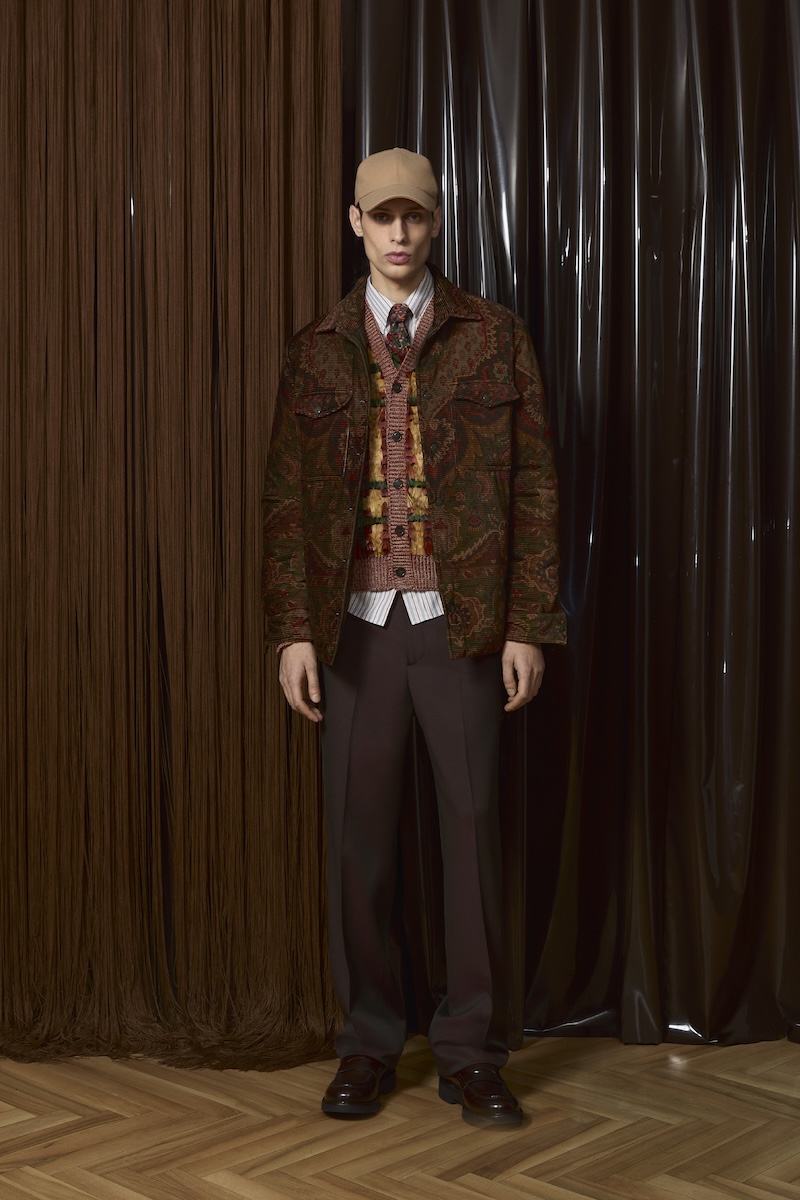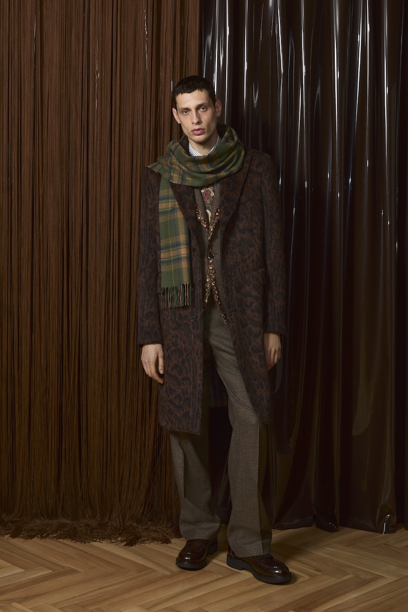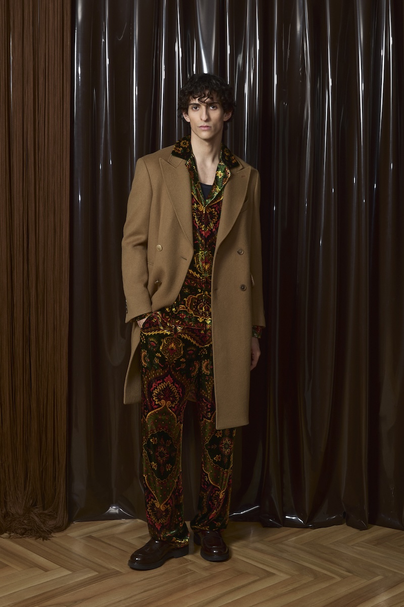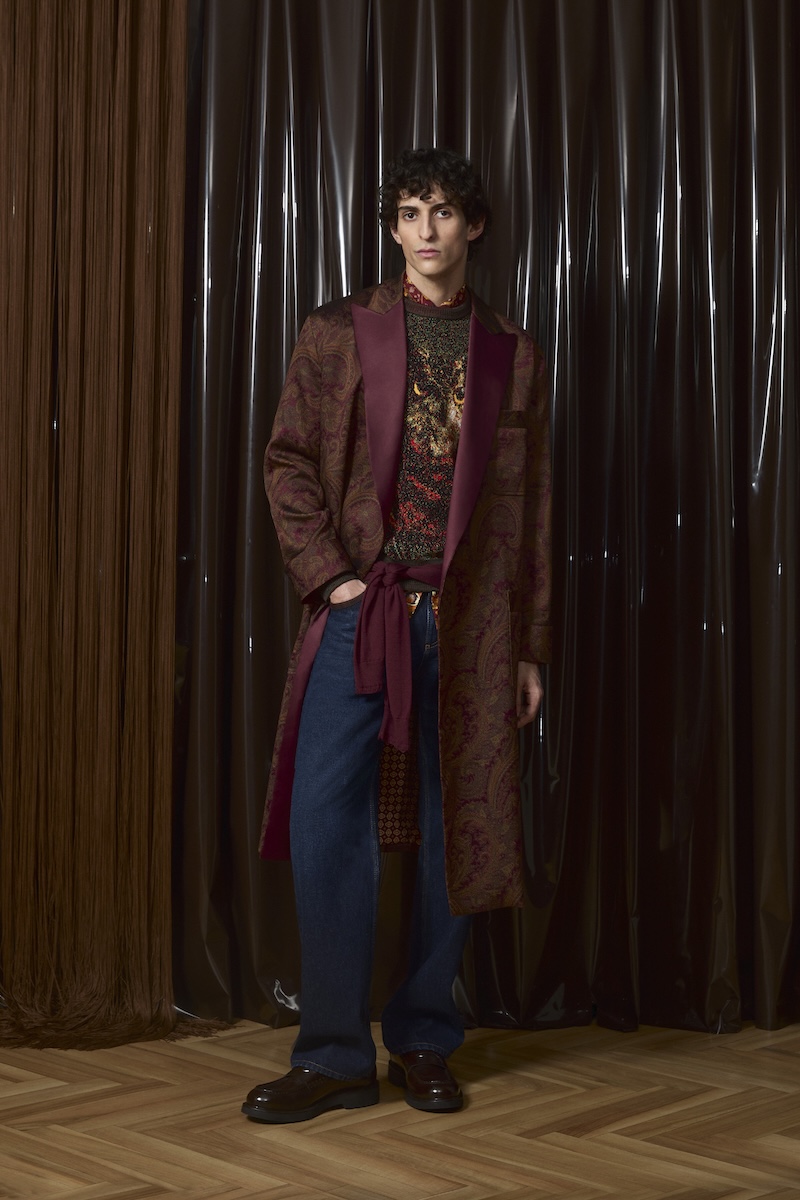 そして象徴的なペイズリー柄は、シャツやパンツからベルベットのローブコートやパジャマにまで採用。ダークブラウンやフォレストグリーン、バーガンディー、アンバー、インディゴといった秋冬らしい深みのある色合いが全体をまとめ上げています。