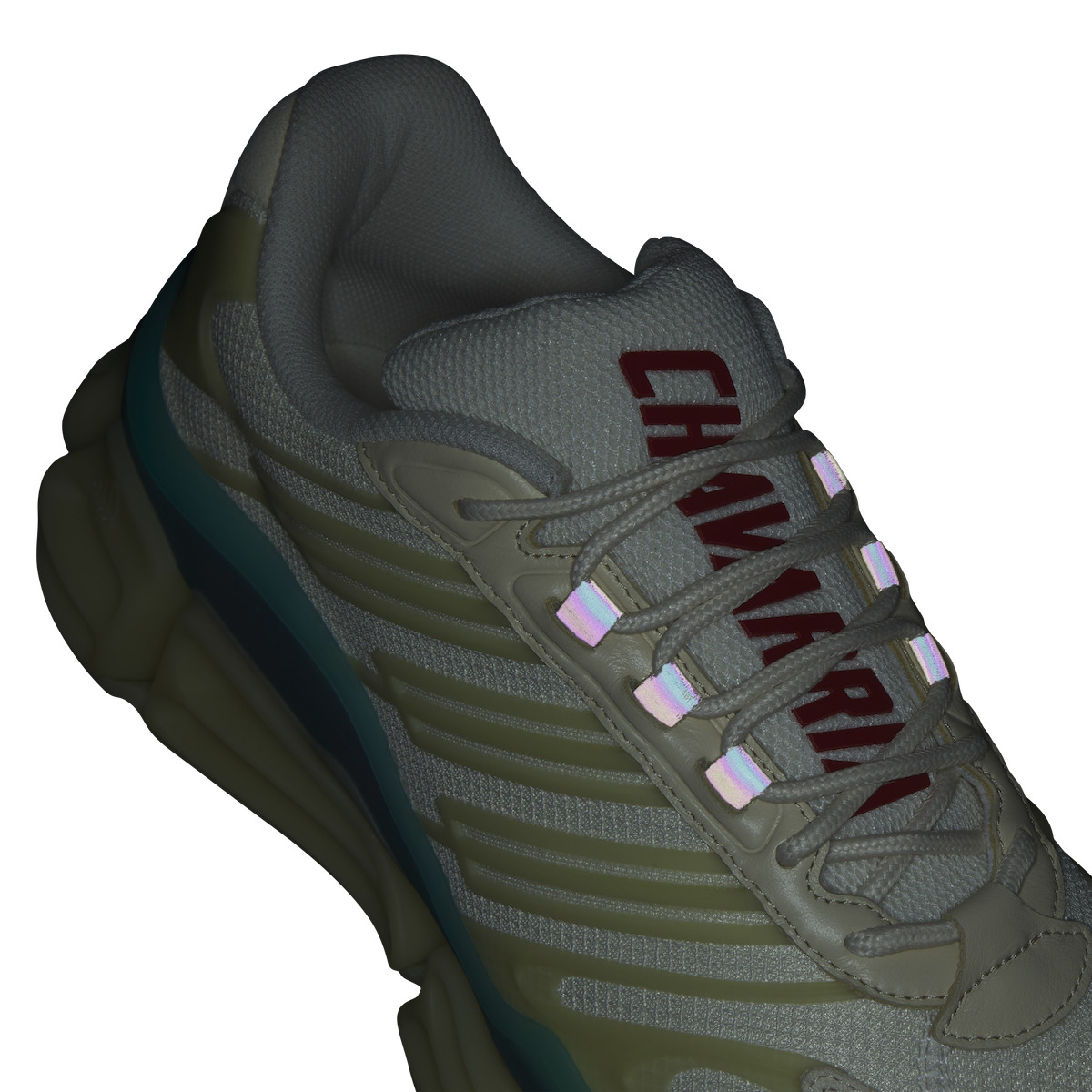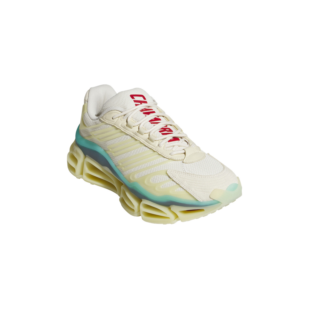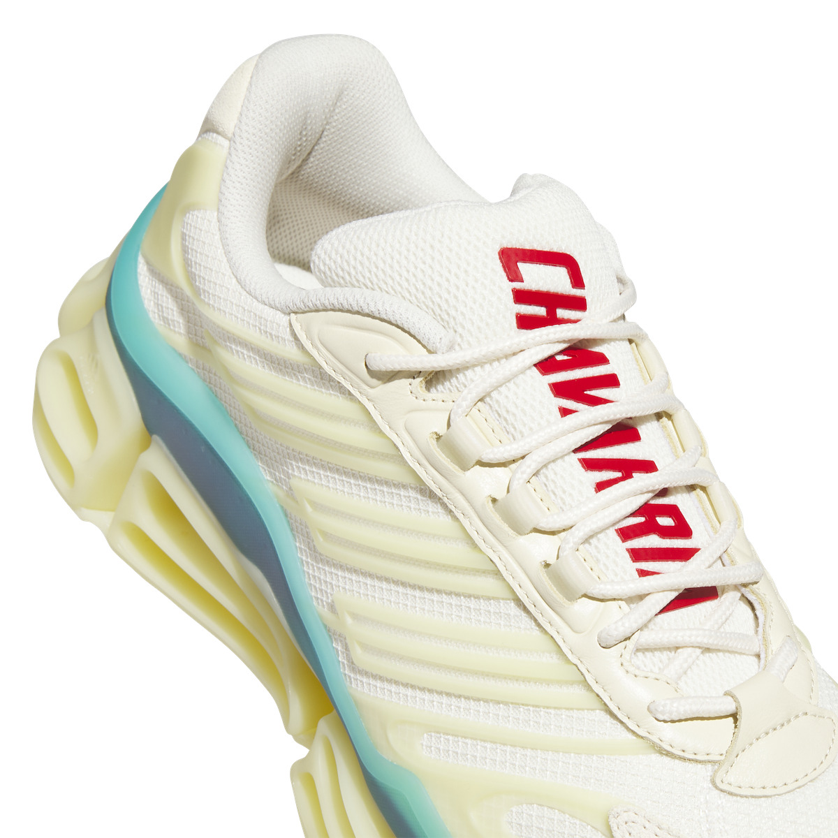 “メガライド”シリーズを再解釈した本モデルは、「ウィリー チャヴァリア(WILLY CHAVARRIA)」2026-27年秋冬コレクションで初めて登場。壮大な宇宙に着想を得たデザインで、ソックライナーにダブル「アディダス」ロゴを配置し、トゥとヒールにスエードのアクセントをあしらったほか、シュータンに“Chavarria”プリントを施した。