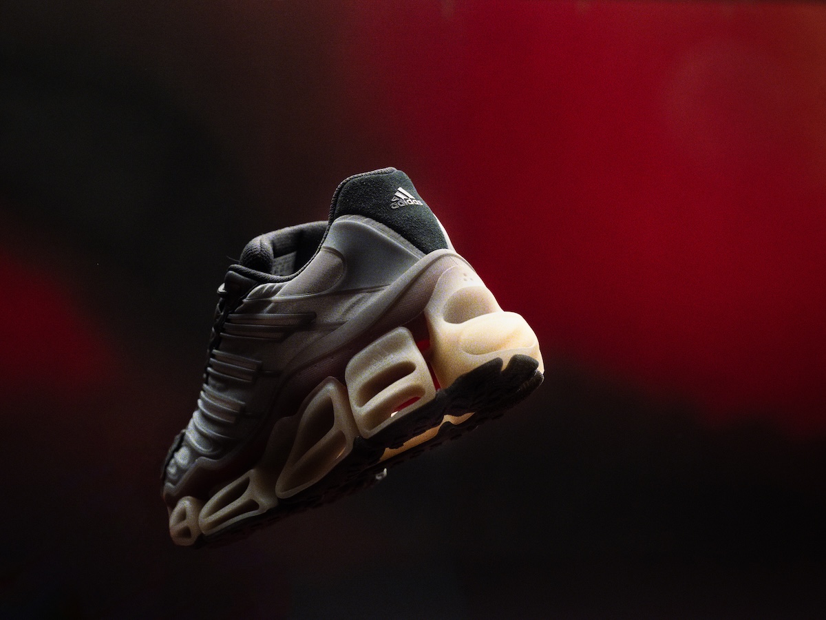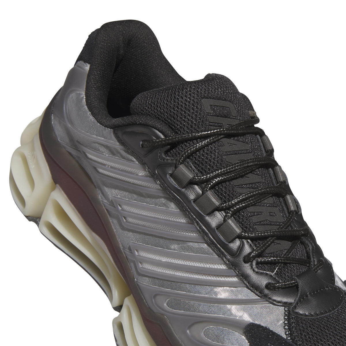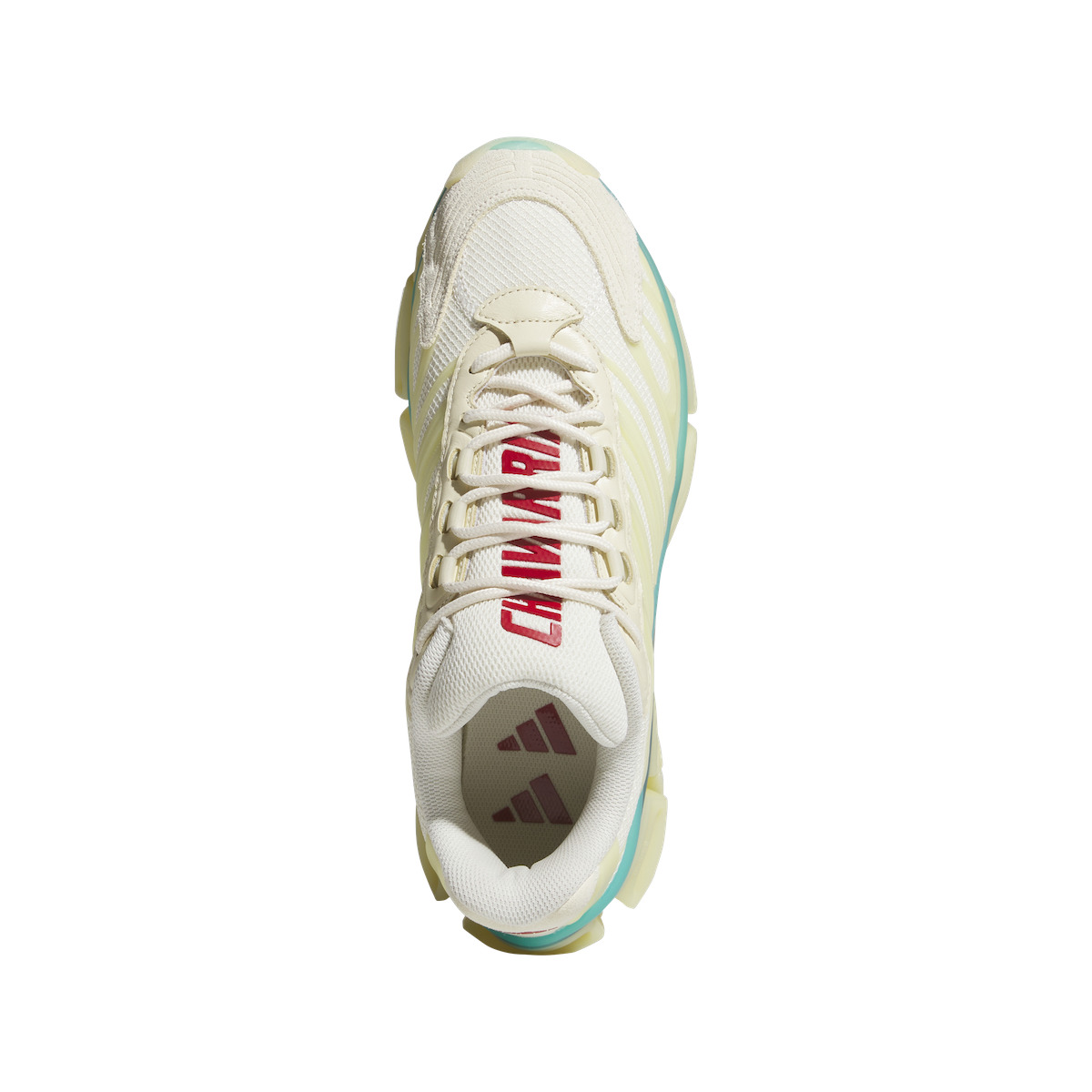 “メガライド”シリーズを再解釈した本モデルは、「ウィリー チャヴァリア(WILLY CHAVARRIA)」2026-27年秋冬コレクションで初めて登場。壮大な宇宙に着想を得たデザインで、ソックライナーにダブル「アディダス」ロゴを配置し、トゥとヒールにスエードのアクセントをあしらったほか、シュータンに“Chavarria”プリントを施した。