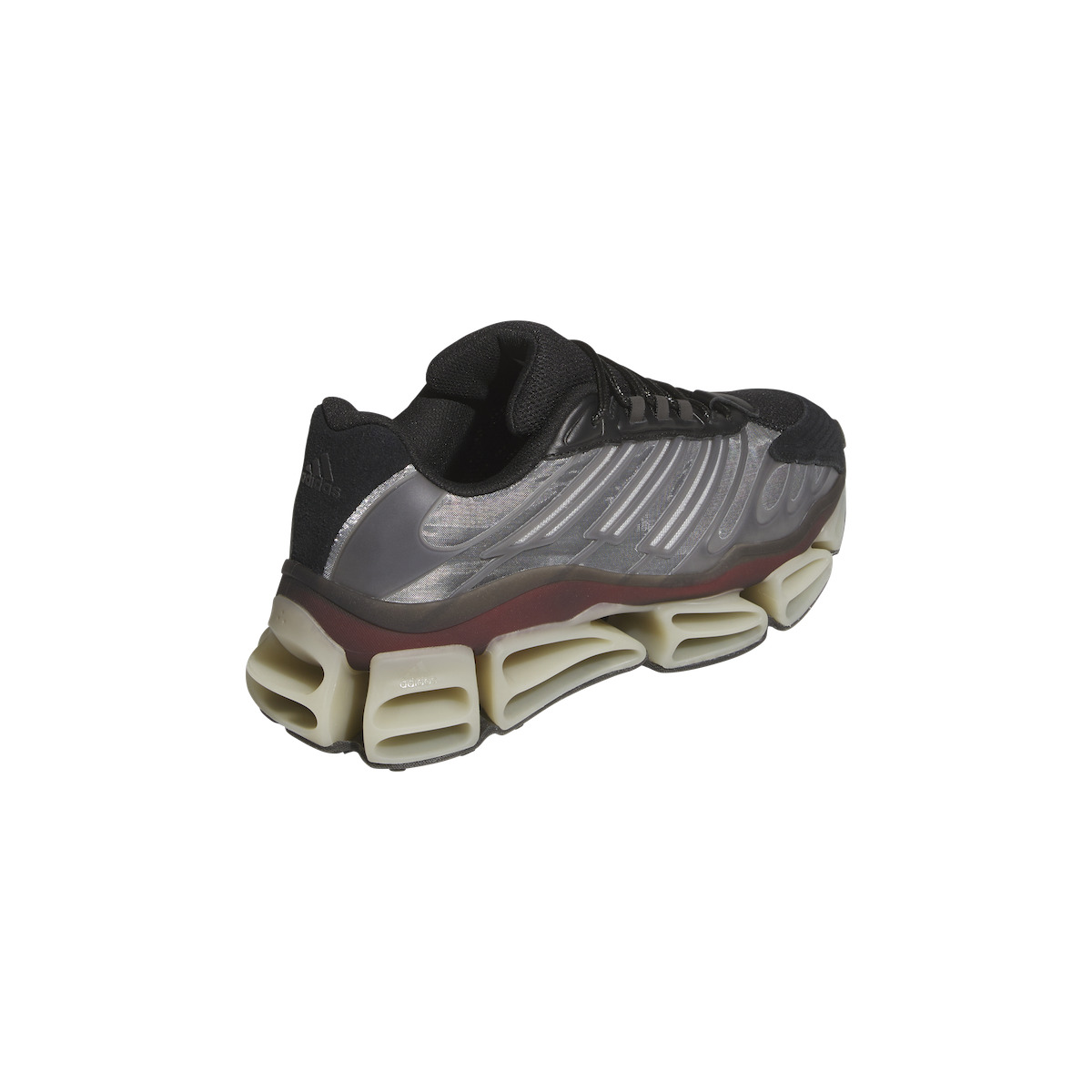 ブラックは、シルバーのメタルメッシュと半透明TPUオーバーレイを重ね、トゥとヒールにリフレクターを配置、アウトソールは半透明のパティグレーとレッドフォームを組み合わせた。