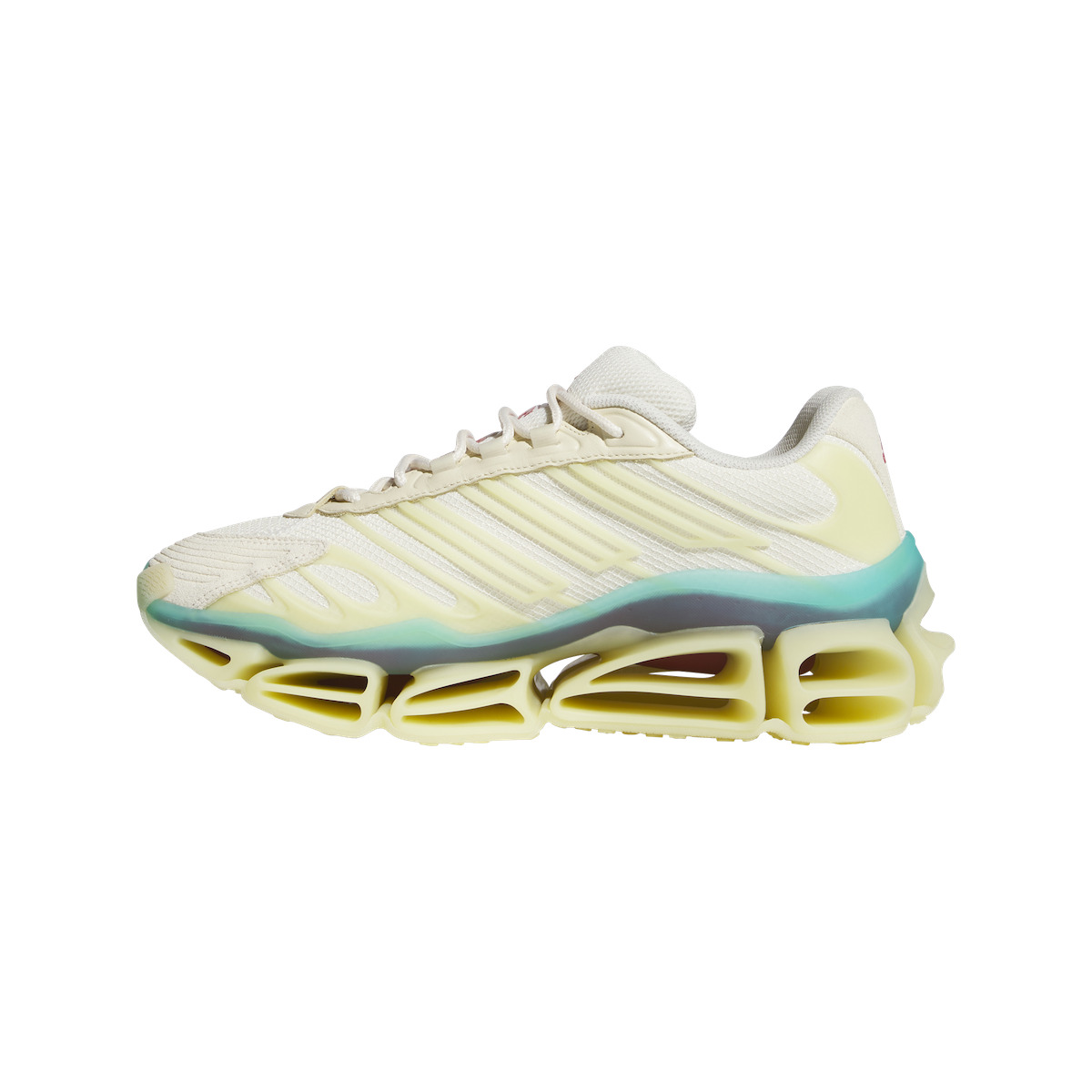 クリームは、メッシュアッパーに半透明TPUオーバーレイを重ね、アウトソールにレッドの差し色をプラスした。