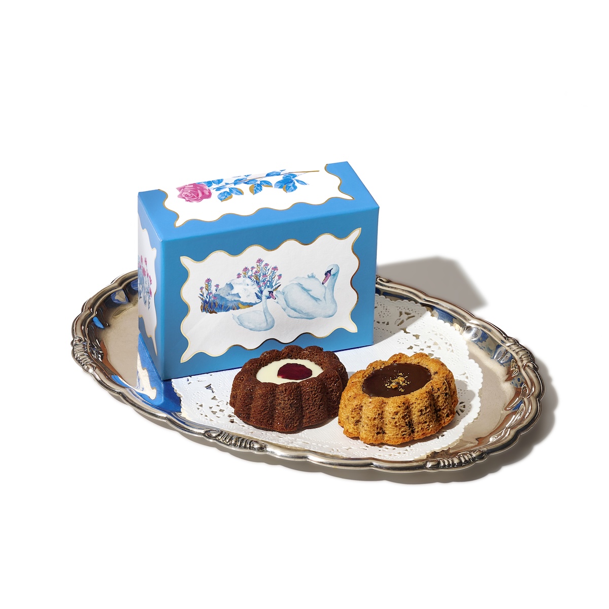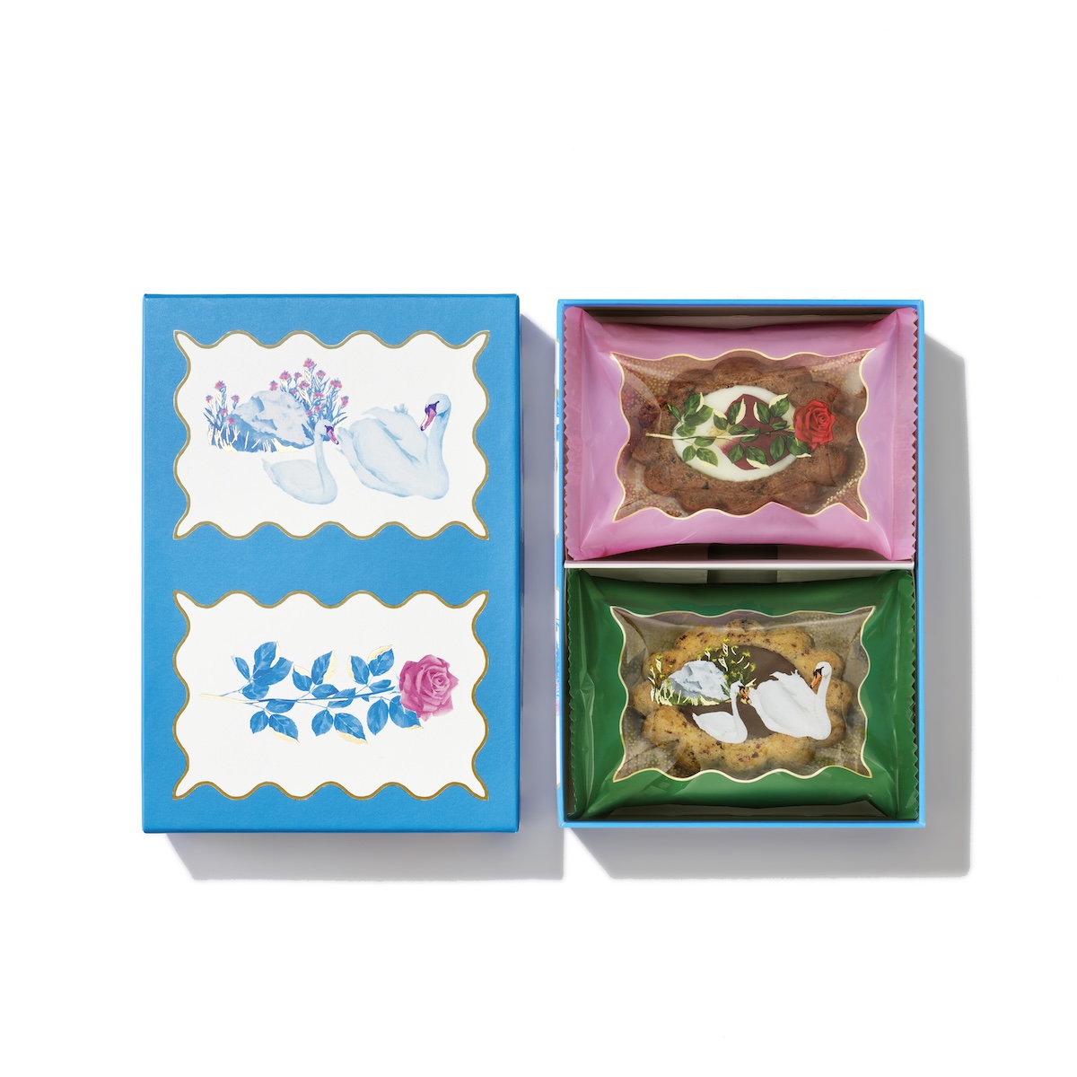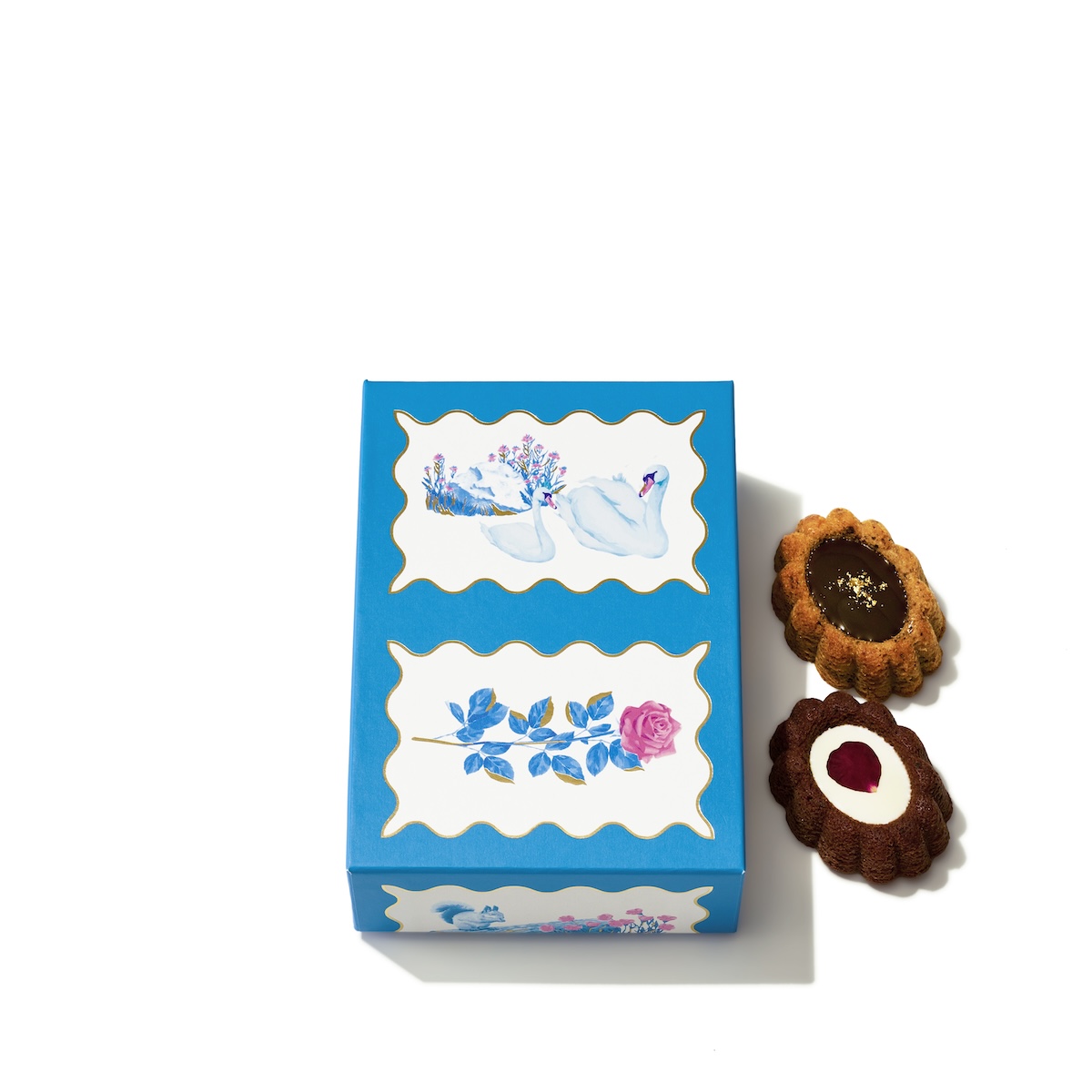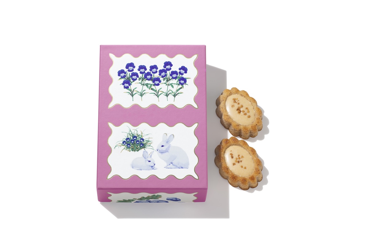 また両ブランドの協業に伴い、一部店舗では「ルル メリー」の定番スイーツも販売する。クラシックな花のイラストが描かれたボックスに入った“ショコラサブレ”(2枚入り、410円/8枚入り、1404円)お花のディグレ(2個入り、864円)、アーモンドキャラメル味のお花のディグレ(4個入り、1944円)をそろえる。