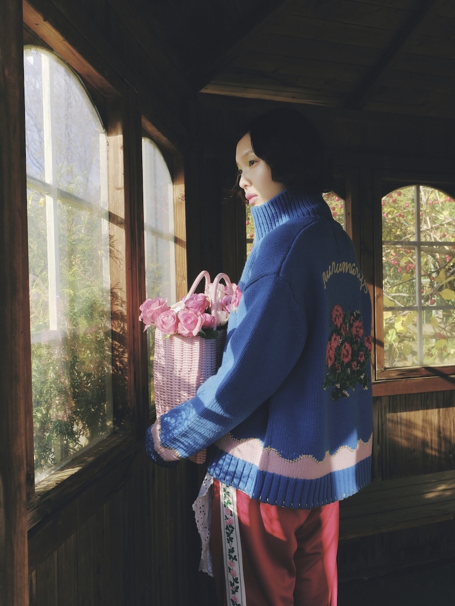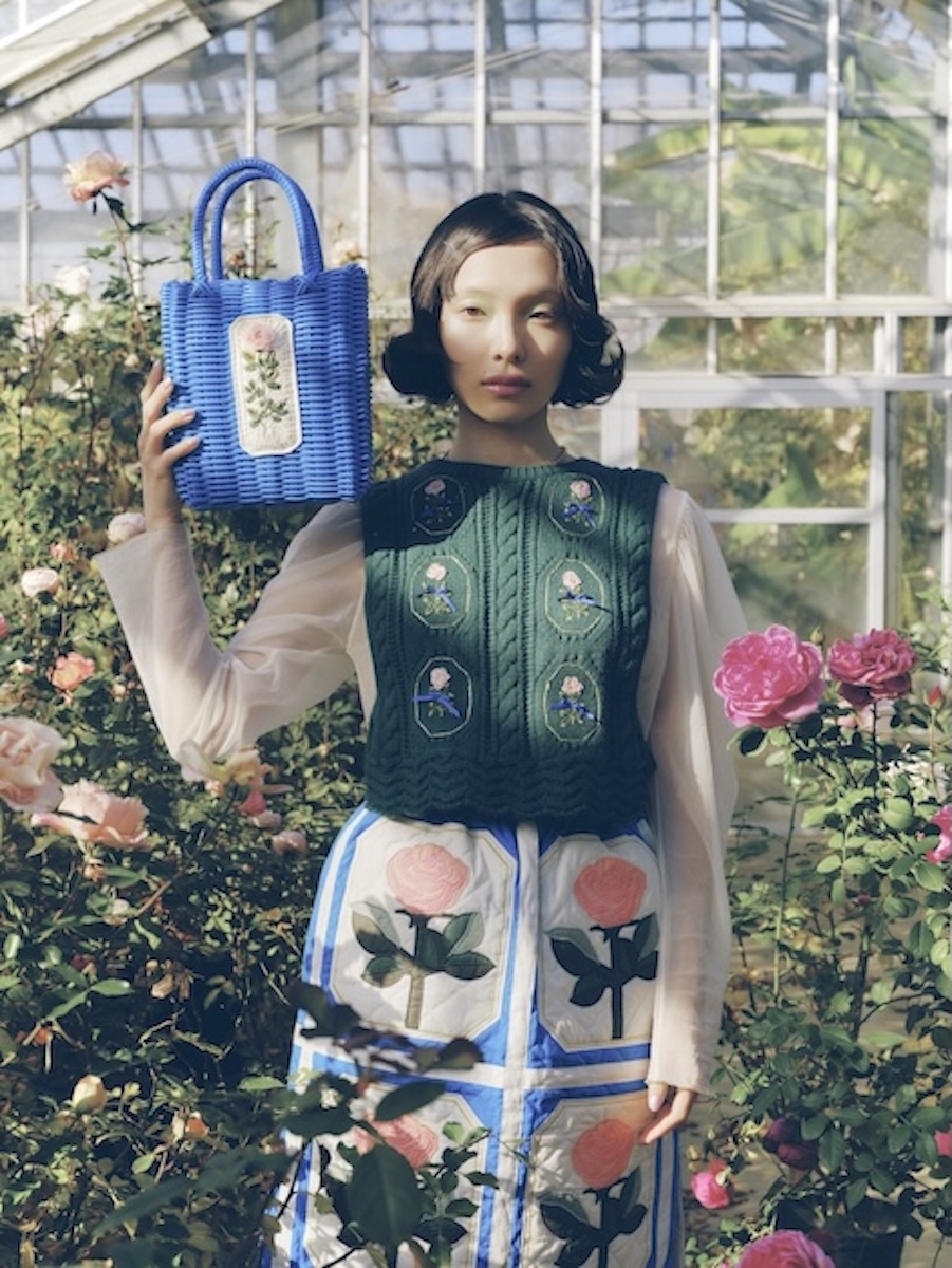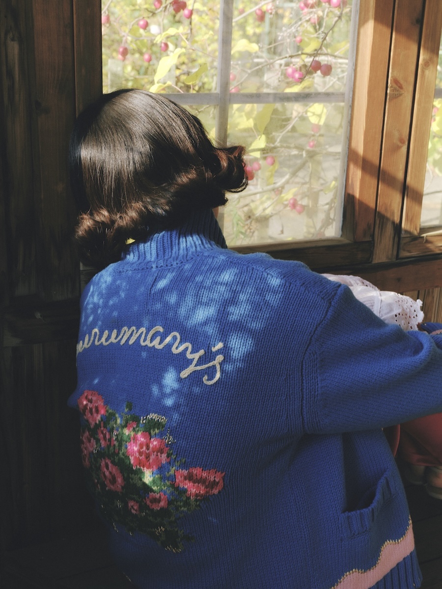 本コラボレーションは今回で5度目。今回は、“ルル メリー お花のティグレジャージトップス”(3万3000円)などのジャージシリーズや、保冷ポケット付きのリバーシブルキルティングバッグ(9900円)などのキルティングシリーズに加え、アイコニックな薔薇を立体感のある手刺しゅうで表現したかごバック(全2色、各1万2100円〜)などをそろえる。さらに、新登場の“ルルメリー ジャカート ニットアウター”(3万8500円)などのニットシリーズを展開し、全13型を用意する。