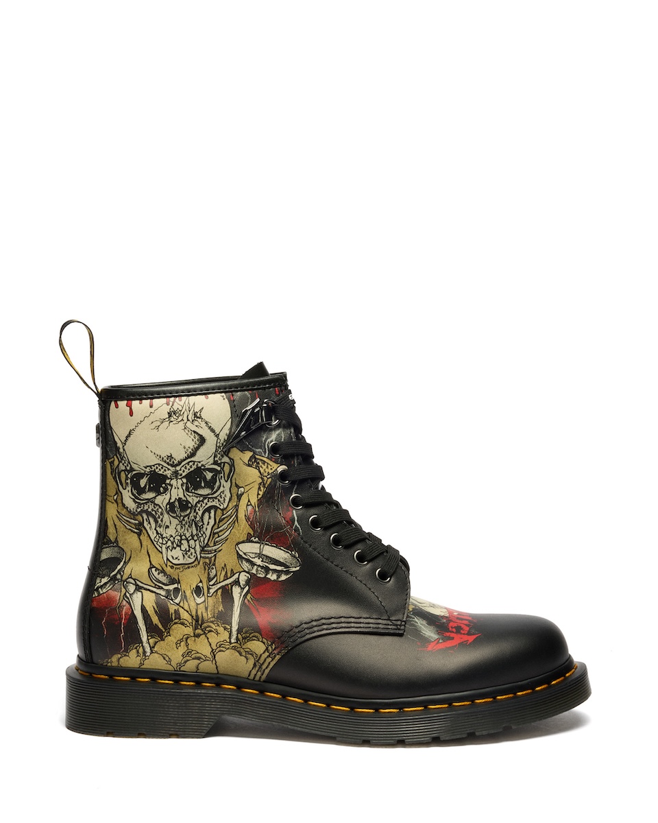 1981年に結成されたメタリカは、現在もメタルシーンのカルチャーコミュニティーに影響力を与えるアルバムを発表し続けているヘビィメタルバンドだ。本コラボレーションでは、「ドクターマーチン」の定番モデルである“ザ 1460 ブーツ”と“ザ 1461 シューズ”をベースに構成した。メタリカが1980年代の歴史的なワールドツアーで使用した、アーティストのパスヘッド(Pushead)のアートワークをフィーチャーした。