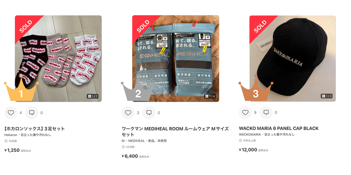 フリマ市場で圧倒的な地位を築く「メルカリ」で取引が活発なブランドは何か?1カ月の取引数が前月と比べて大きく伸長したブランドを、伸長率と共にランキング。12月の取引数ではメンズ、ウィメンズともに「ホカロン」のレッグウエアの売買が活発に。携帯カイロの代名詞ともいえる「ホカロン」の認知度と、「ビームスゴルフ」とのコラボなどの仕掛けが奏功したようだ。