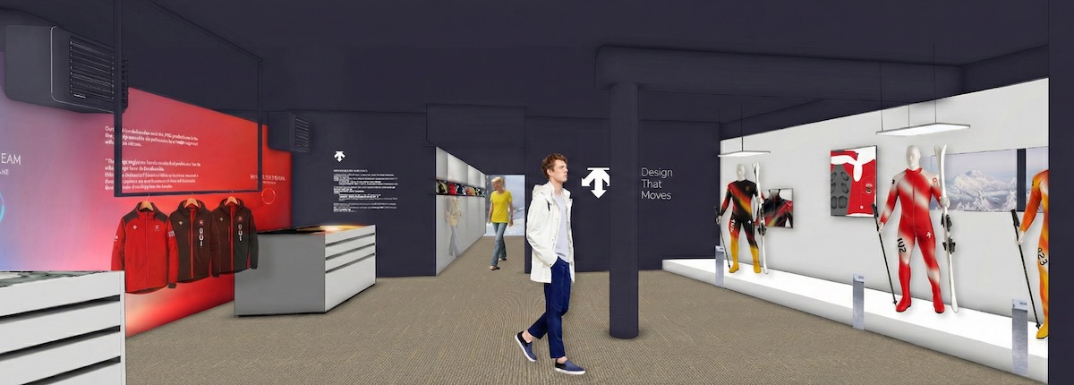 本ブランドハウスは、選手やチームおよび関係者へのホスピタリティサービスやメディア対応を行う施設だ。また、スキーウエアのアーカイブやレーシングスーツ、テクノロジーの進化も展示する。スイス、カナダ、ドイツ、スペインなどナショナルチームのレーシングスーツをそろえ、最新テクノロジーアイテムの掲示では、研究開発拠点のディスク オオサカ(DISC OSAKA)などで生み出されたテクノロジーを搭載したアイテムを紹介する。さらに、ラウンジスペースでは、大型スクリーンを設置し競技のライブ中継やハイライト映像を放映し、選手やチームおよび関係者の交流の場を提供する。