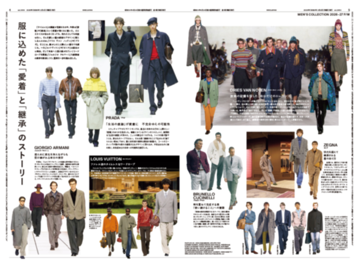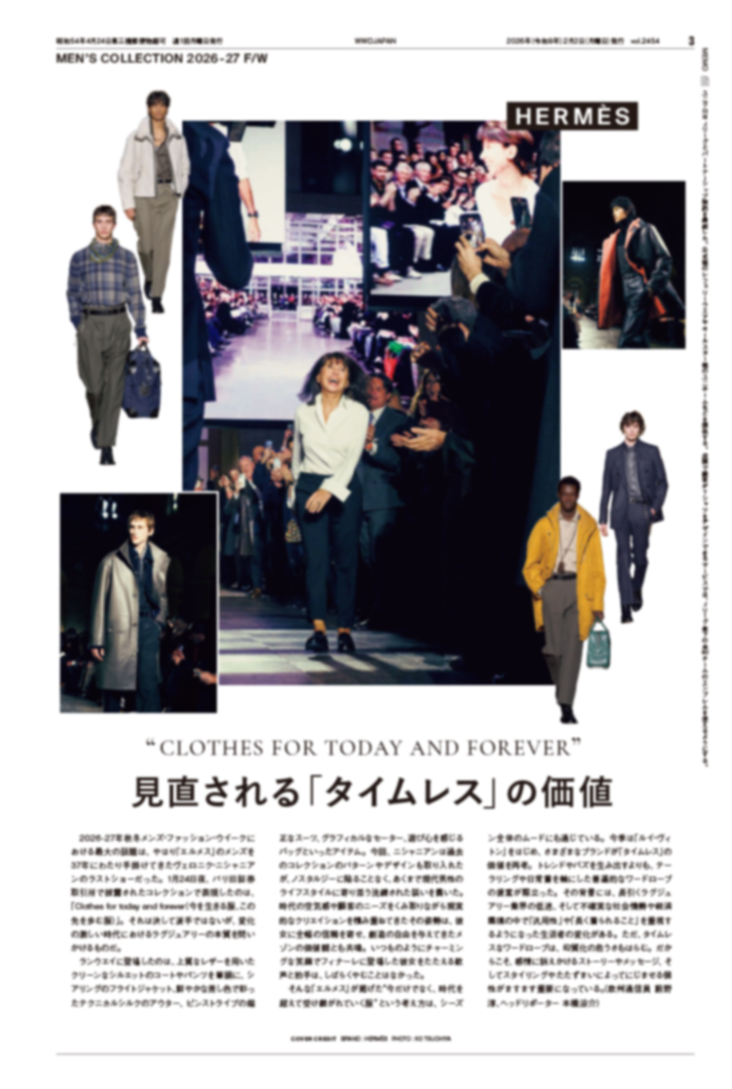 2月2日号の「WWDJAPAN」では、1月の2026-27年秋冬メンズ・ファッション・ウイークを速報します。当号では“BUILT TO LAST 時代を超えて、愛される服 ”というタグラインを掲げ、単なる流行の消費ではなく、着る人の人生に寄り添い、時間の経過とともに価値を深めていく服のあり方について考えます。