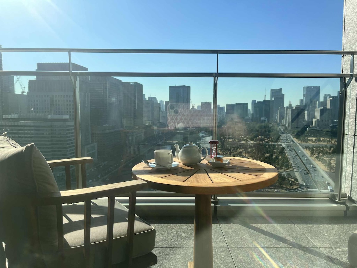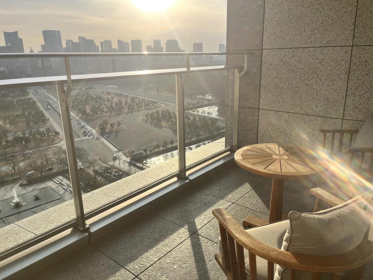 チェックアウトの12時まではプライベートバルコニーで絶景を独り占めし、皇居外苑のお隣という贅沢を味わう。なんてスペシャルな朝!バカンスは自宅から10数キロでも実現できる。1日の滞在でも、心も体もエナジーを満たし、魂までチューニングできた。