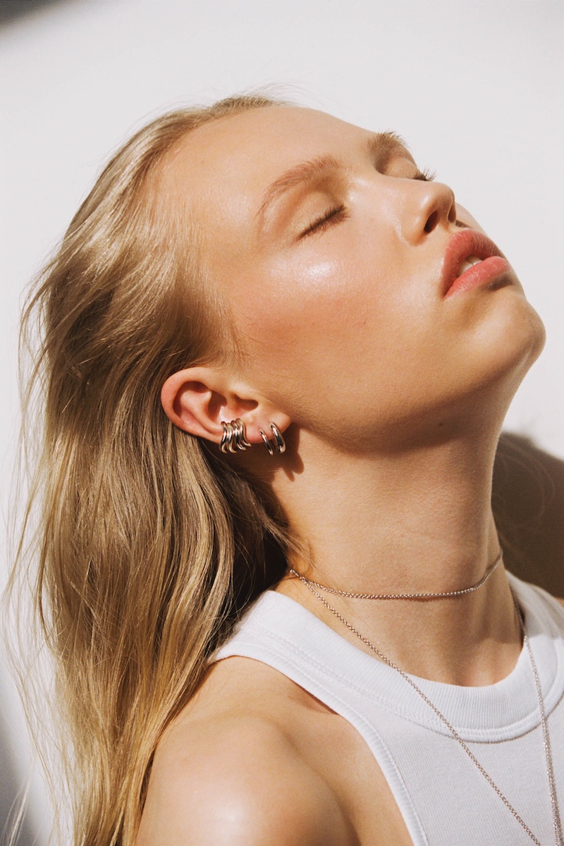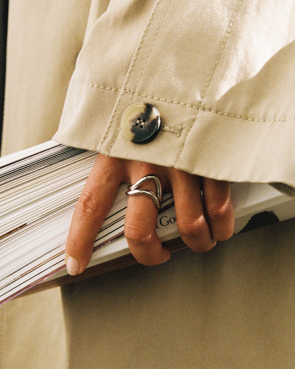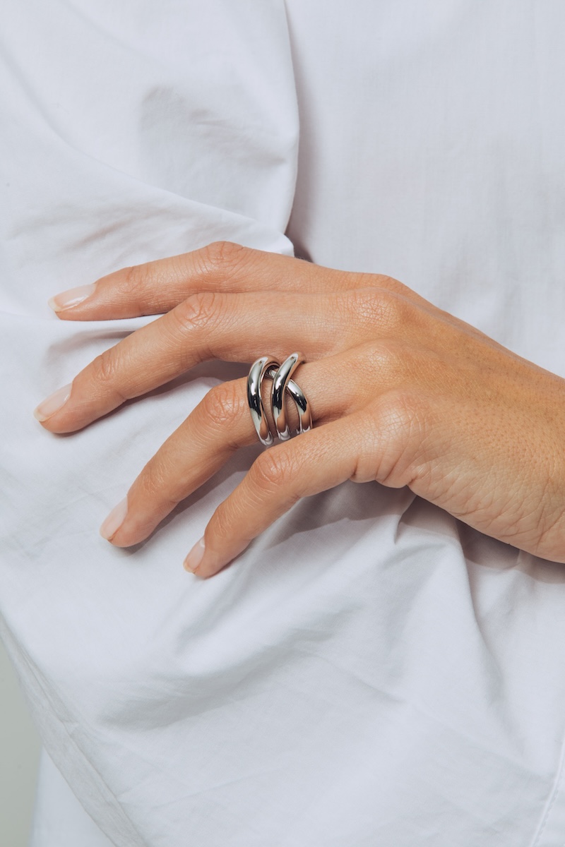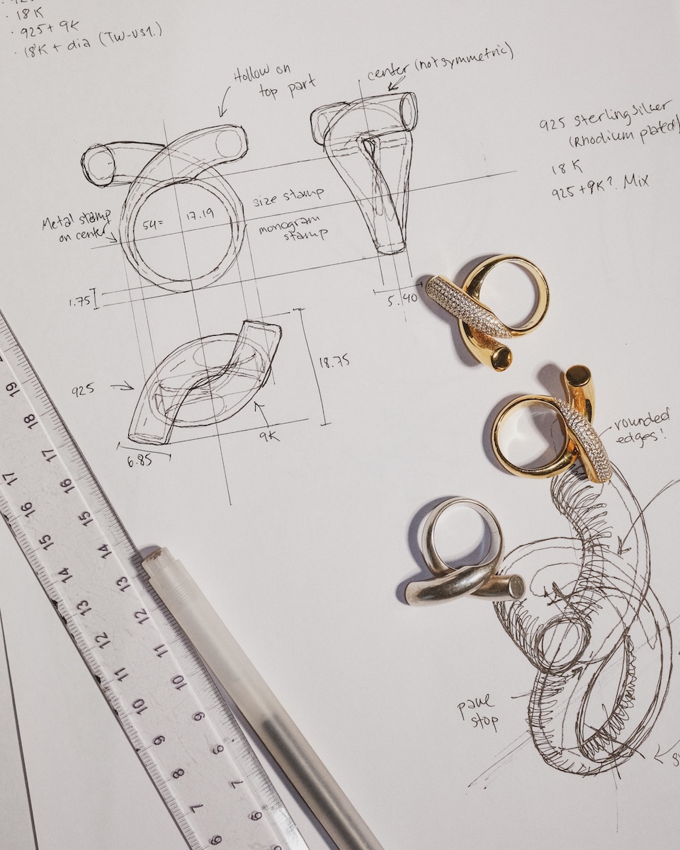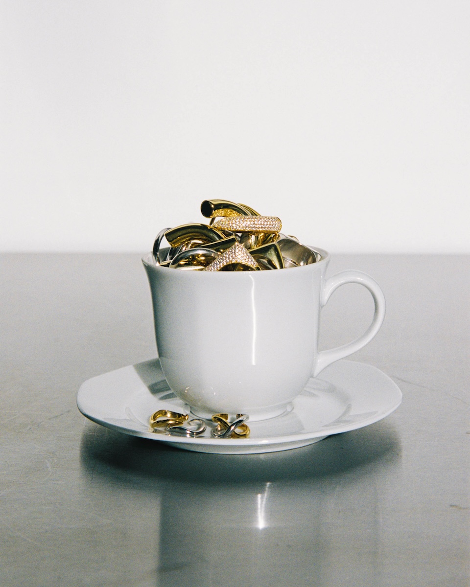 同ブランドのジュエリーは、明確なシーズンごとに新作を発表するのではなく、時間をかけて少しずつデザインを積み重ねていくアプローチを採用している。素材には、リサイクルマテリアルを使用し、持続可能なジュエリーづくりを続けている。