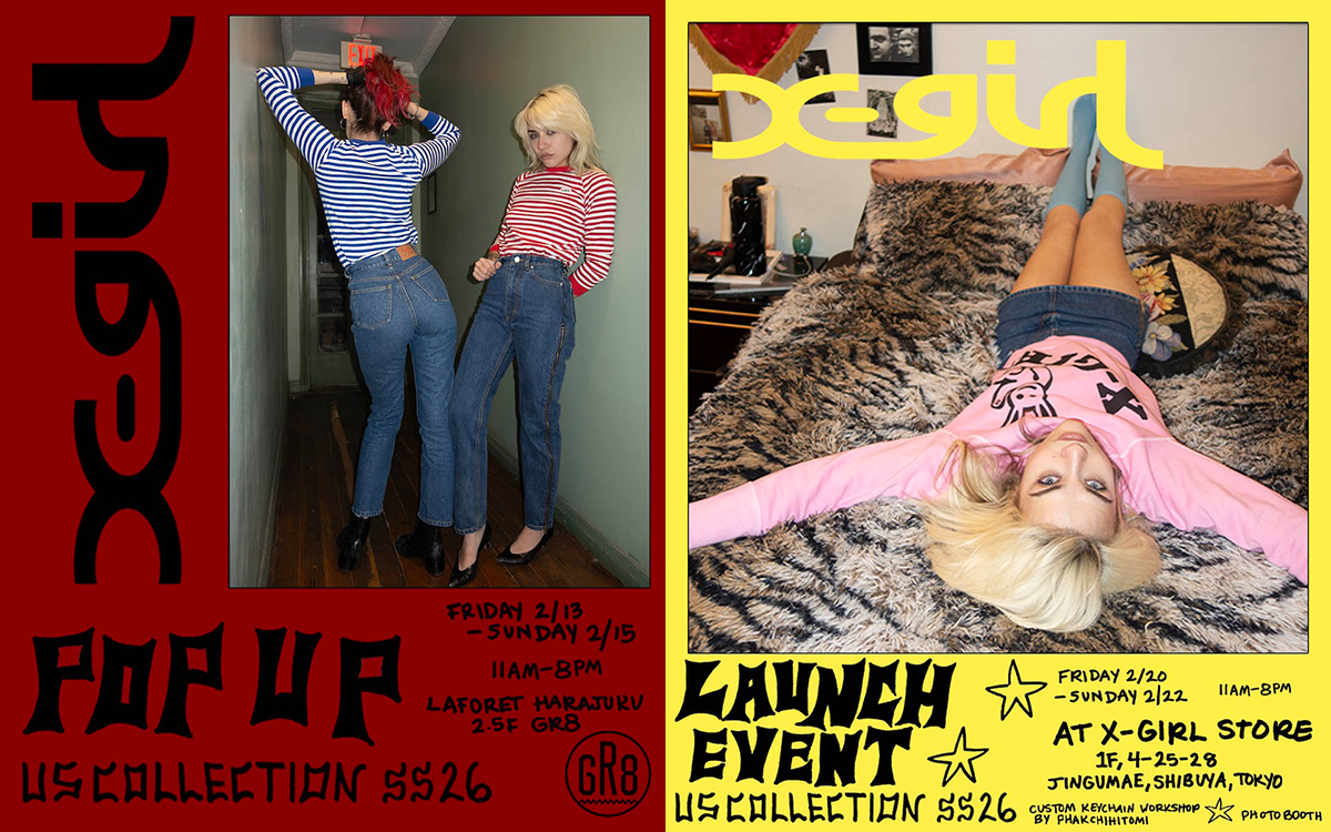 2月20日から日本国内の「エックスガール」店舗(X-girlストア・大阪・名古屋・福岡店限定)およびUS公式サイトで販売する。