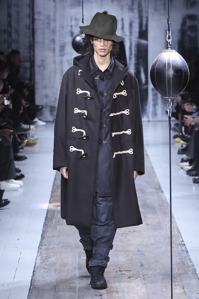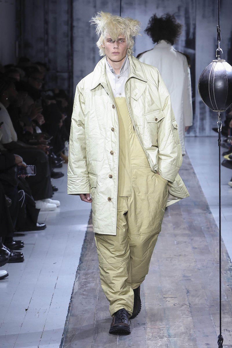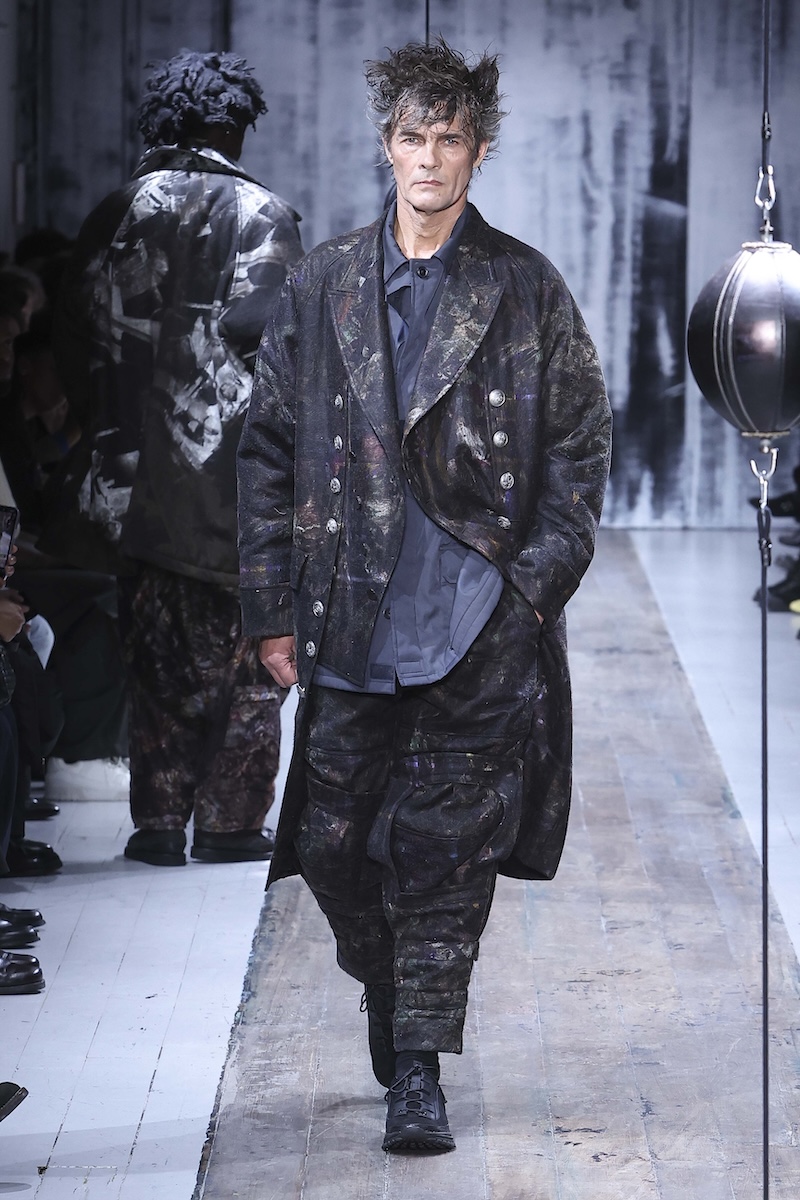 「ヨウジヤマモト(YOHJI YAMAMOTO)」 の2026-27年秋冬メンズ・コレクションは、この複雑な現代社会で闘う男性たちを静かに鼓舞する応援歌のようだった。山本耀司デザイナーは今季、ミリタリーと土や泥にまみれる仕事から着想。“プロテクティブ(保護的)”な服の役割に目を向け、体と心を守る服のあり方を探求した。