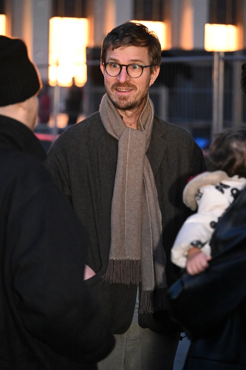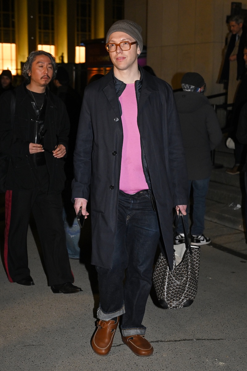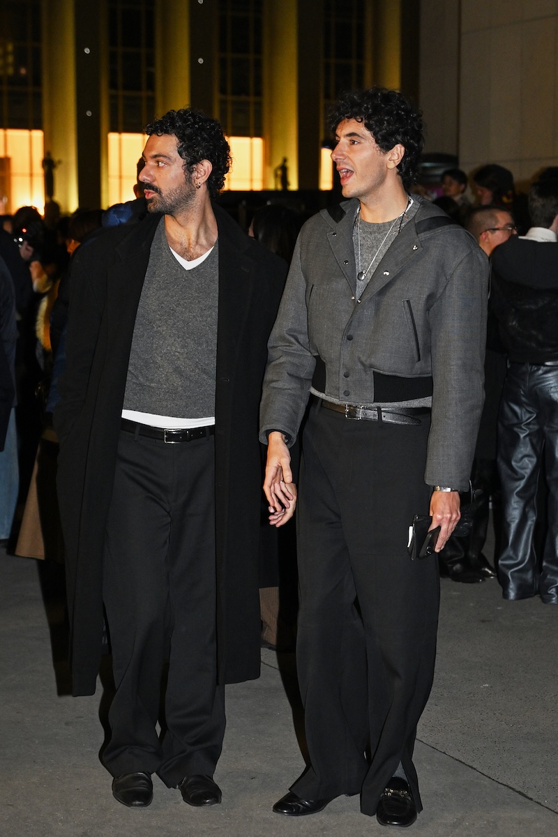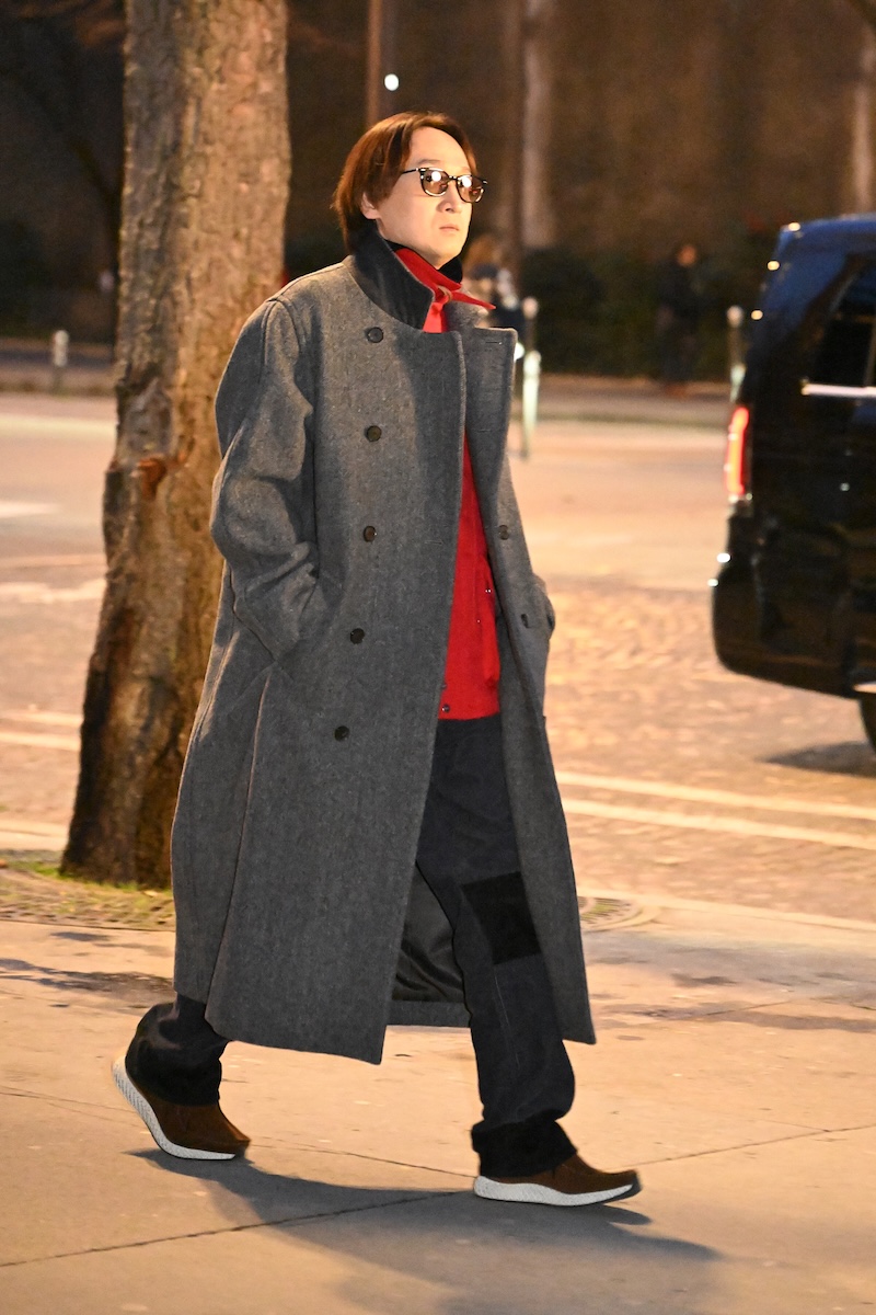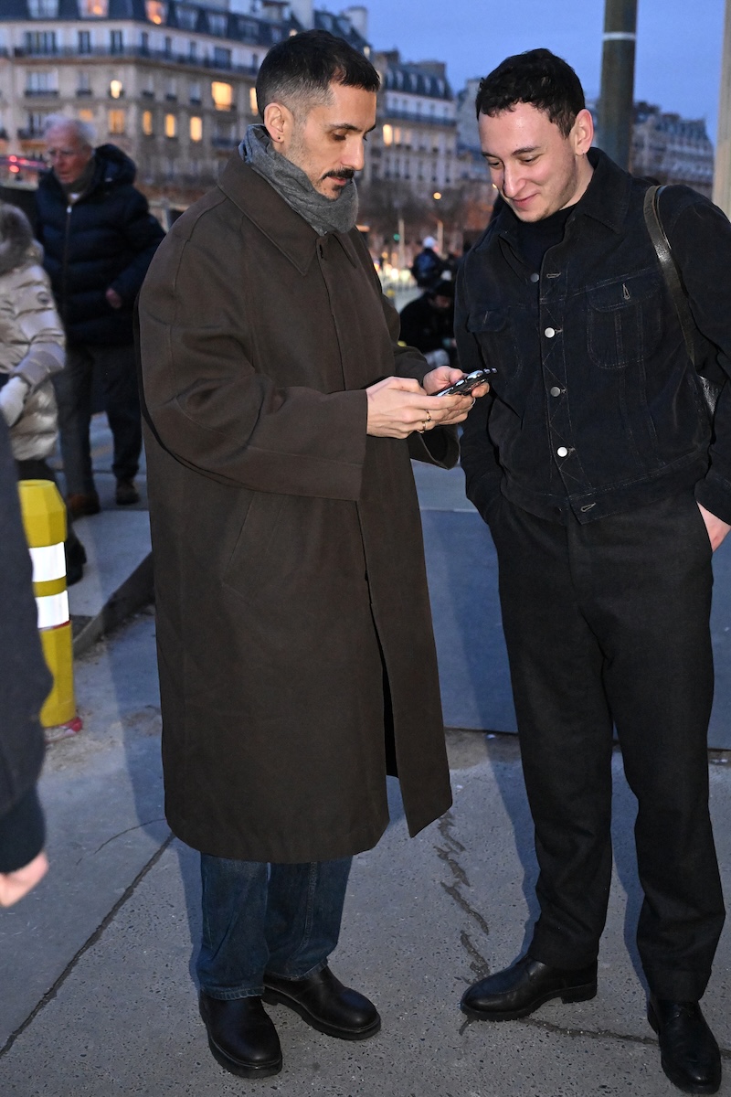 被り率が高かったのは、襟にレザーを配したブルゾンジャケットと、フリースのような表情を持ちながら実はシルク100%で作られたハーフジップセーター。ニットウエアを腰に巻いたり、マフラーを首元から無造作に垂らしたりと、絶妙な抜け感を生み出す「オーラリー」のスタイリングを踏襲する来場者も多い。時折、赤や緑といった差し色を一点だけ効かせる装いも見られるが、ランウエイで披露された最新コレクションでは、ビビッドカラーを大胆に掛け合わせたルックも提案された。抑制の効いたグレーを基調とした来場者の装いとは対照的に、来シーズンのオフランウェイでは、より強い色彩表現が広がりを見せそうだ。