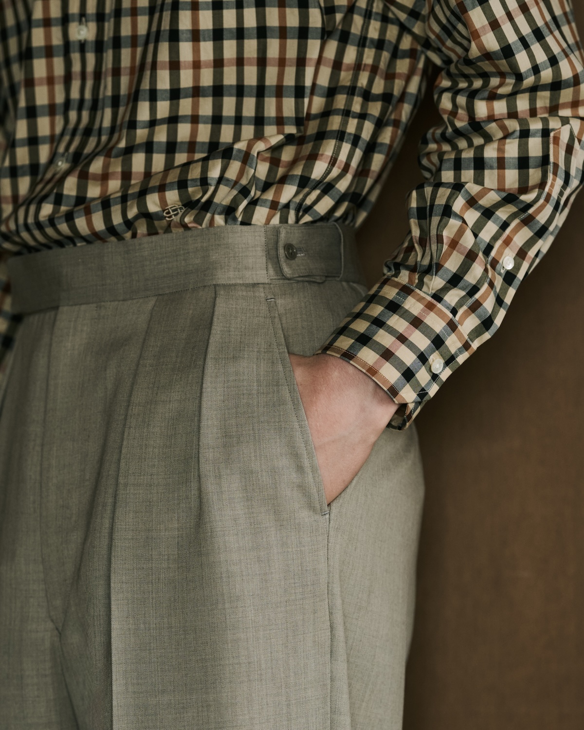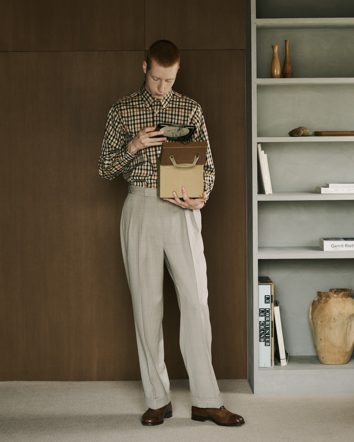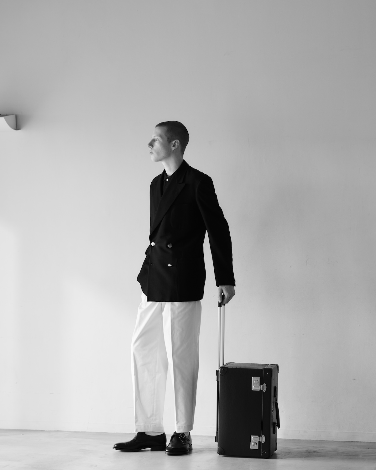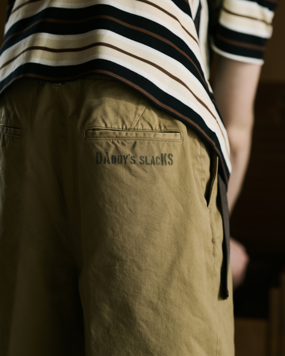 アイテムは、1934年に誕生した世界初のベルトレス・スラックス“ダックストップ”を「サイ」のオリジナルパターンで再構築した“ダックストップ トラウザーズ”(6万4900円)をはじめ、裾のスナップでロング丈とハーフ丈のシルエットを切り替えることができる限定色仕様の“ツイル フーデッド コート”(15万9500円)や、セルビッチデニムを採用し、クラシックなモデルをベースに現代的な機能性を加えた“セルビッチデニム ジャケット タイプ-1”(5万1700円)と“セルビッチデニム バギージーンズ”(4万6200円)を展開。さらに、「ダックス」の“ハウスチェック”生地を用いたボタンダウンシャツに“DS”のモノグラム刺しゅうをさりげなく施した“ハウスチェック B・D シャツ”(5万3900円)もラインアップする。加えて、2プリーツ仕様の“ダックストップ”をミリタリーモデルにアップデートした「DADDYʼS SLACKS」(5万3900円)と、ディテールはそのままに美しいシルエットを実現した「ダックストップ トラウザーズ」(5万3900円)の2タイプを用意するほか、「Tシャツ」(2万900円)、「ショーツ」(4万9500円)、「ベースボールキャップ」(1万6500円)、「ポロシャツ」(2万2000円)などもそろえる。