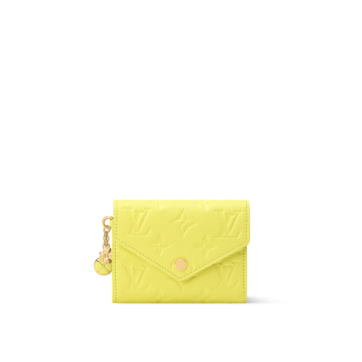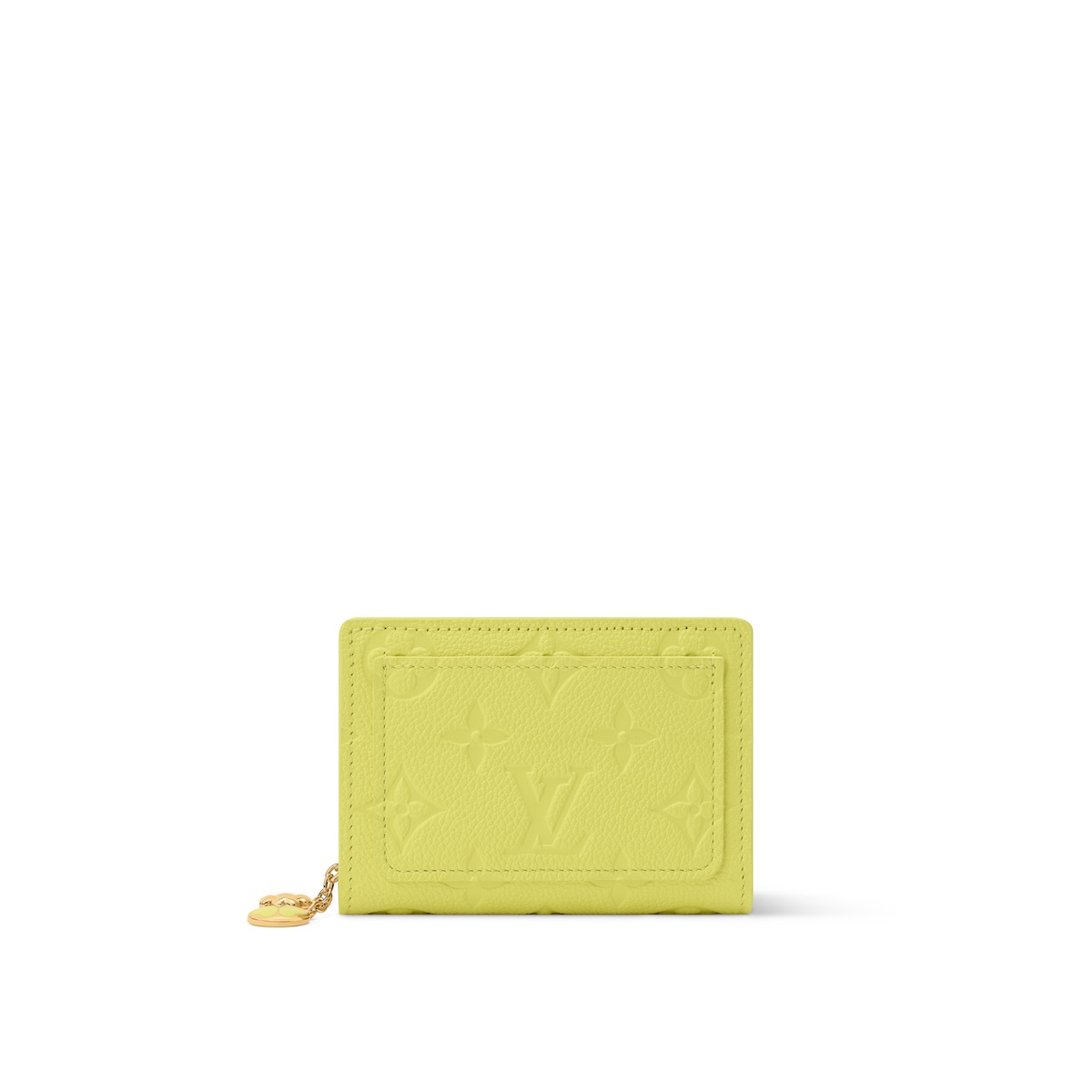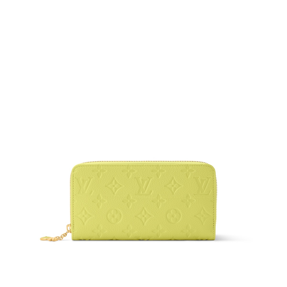 シトラスの色合いで仕上げた日本限定のステートメントアイテム“ポルト フォイユ・クレア”(14万3000円)。モノグラム・アンプラント レザーを使用した本モデルをクローバー形のファスナー引き手で彩り、焼印の技法でおそろいのモチーフを描いた。内装にはスカイブルーのライニングをあしらい、貴重品を収納できるポケットとスロットを備えた。