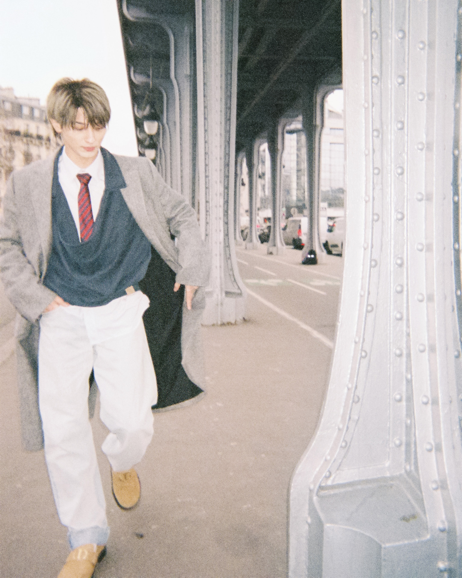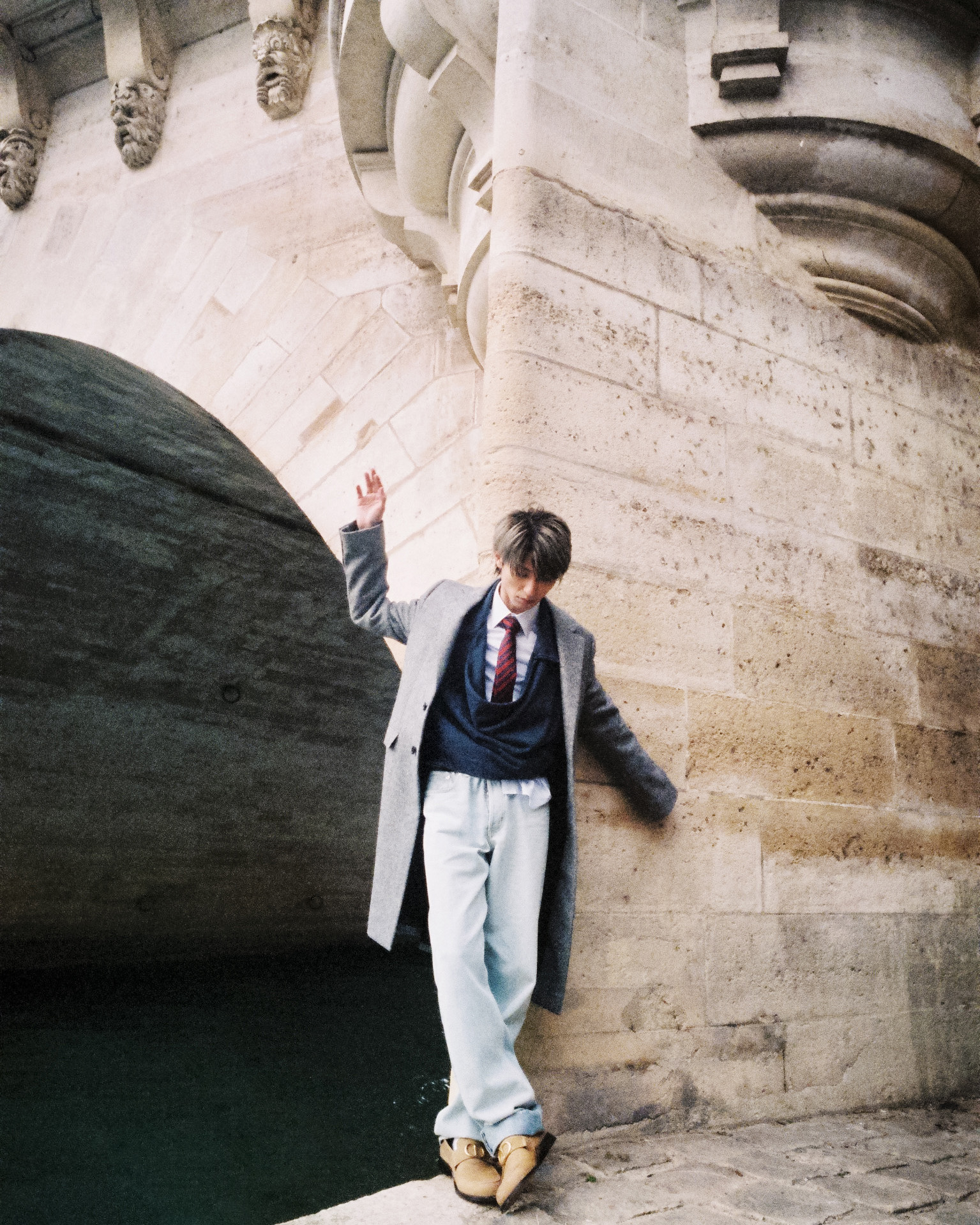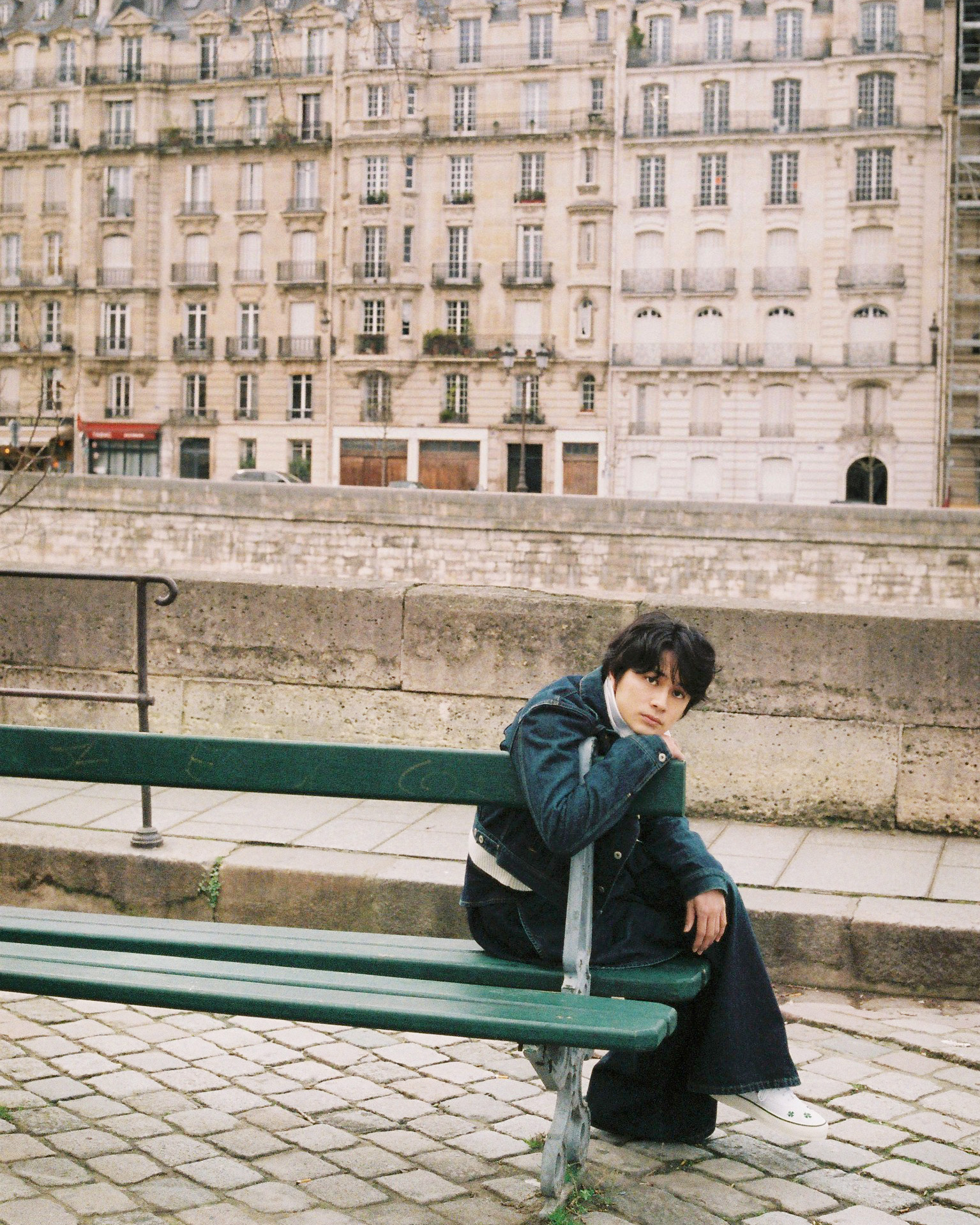 今回の撮影で着た服には、ジョナサン・アンダーソンが大切にしているブランドのルーツや自身の原点が、自然とデザインに落とし込まれているように感じました。特にデニムは素晴らしく、履き心地の良さを感じながら、体を預けるように撮影が進んでいったのが印象的です。自分の動きや呼吸に寄り添ってくれるというか、ただそこに佇んでいるだけで成立するルックでありながら、街や光、空気とともに景色の一部として溶け込んでいく。そんな感覚がありました」。