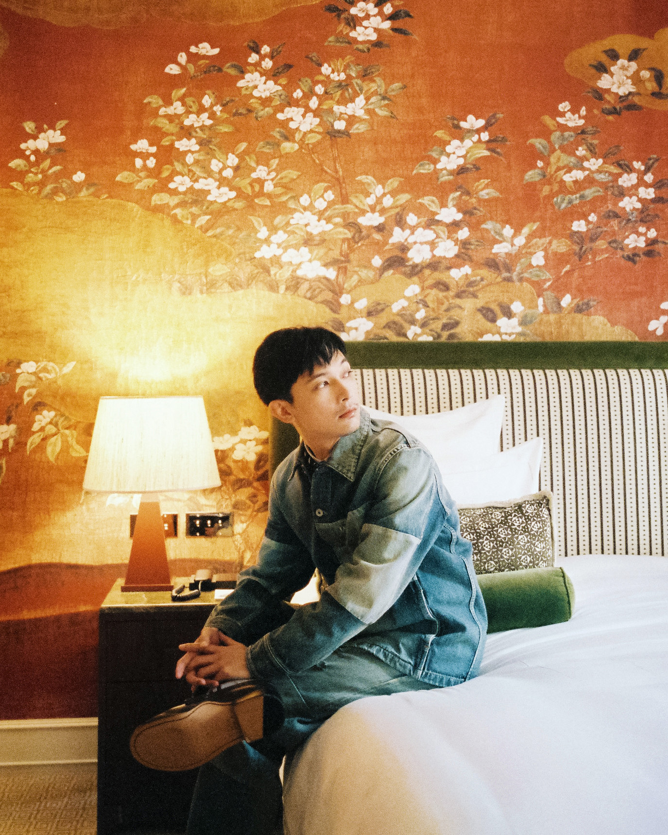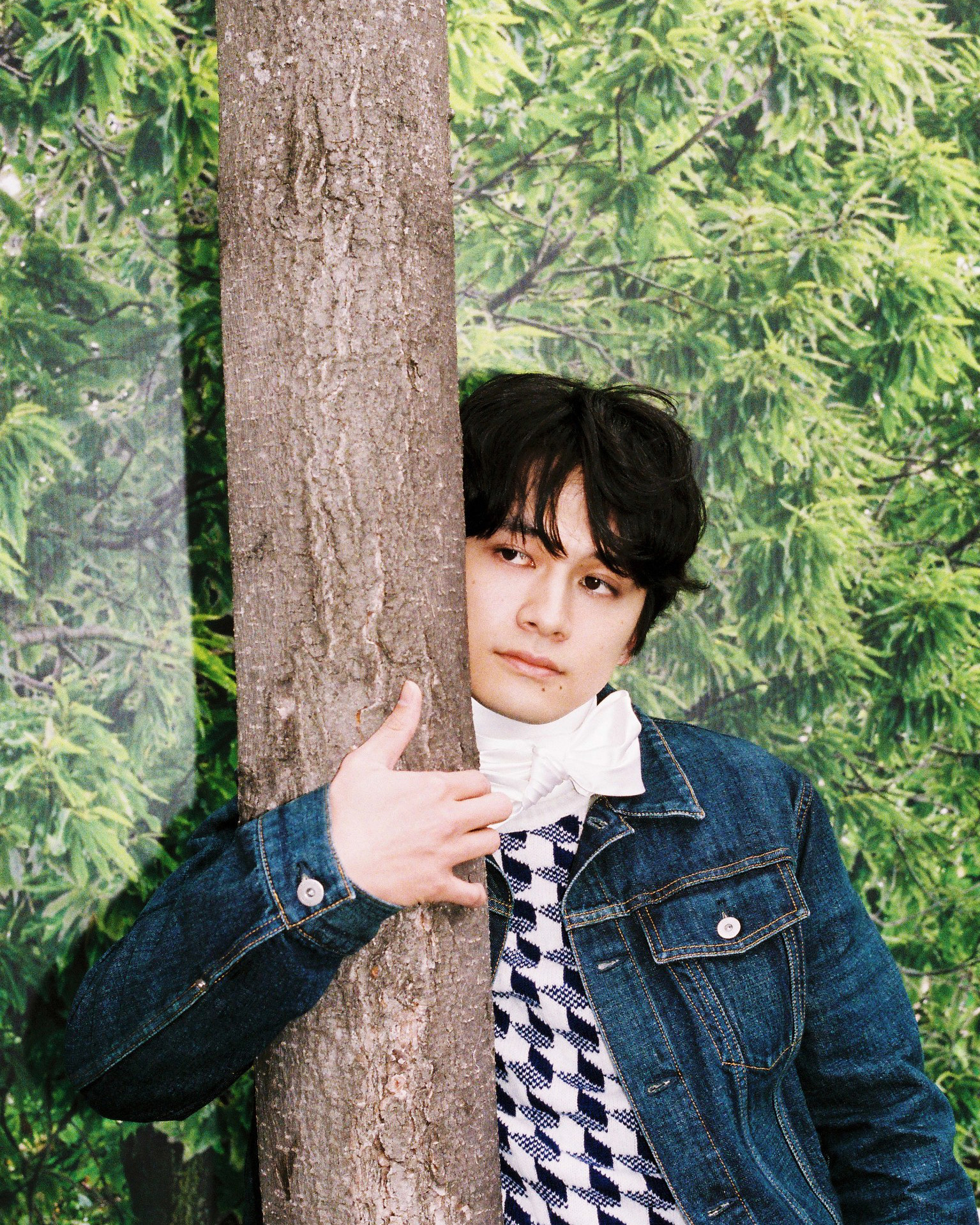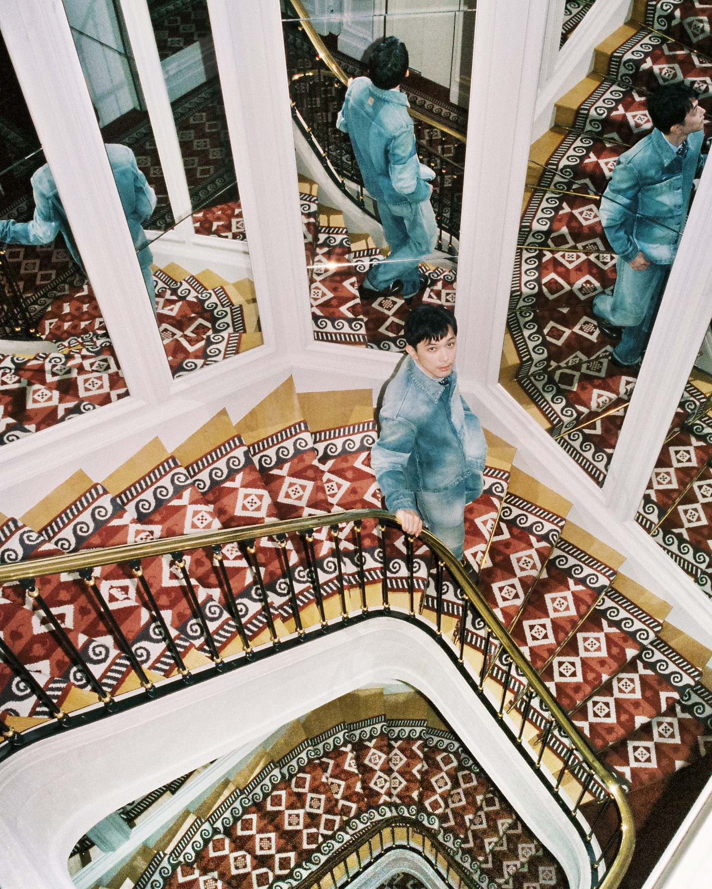 今回特に心に残っているのは、由緒あるホテルのロケーションです。歴史を重ねてきた空間に、あえてデニムのセットアップというカジュアルなスタイルを合わせたことで、対極にある要素が交わり、新鮮な化学反応が生まれました。撮影では、奥山さんのカメラの前に立ちながら、ファッション撮影というよりも、その場の空間や空気感を大切にする時間だったと感じています。また、30代になってからはカジュアルな服の捉え方にも変化があり、デニムであっても、よりフォーマルに品よく着こなす楽しさを見い出せるようになりました。日常的なアイテムを新たな視点で楽しめたことも、今回の撮影を特別なものにしてくれました」。