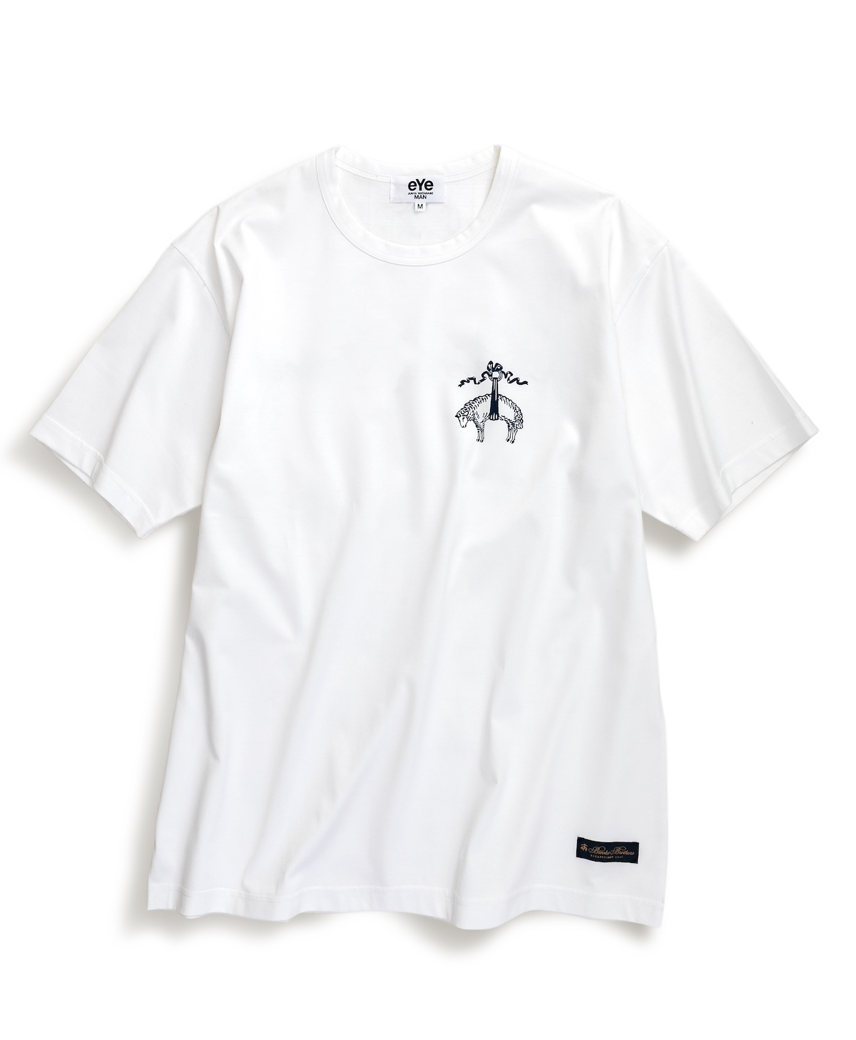 本コラボコレクションでは、「ブルックス ブラザーズ」の定番アイテムであるボマージャケットをベースに、両肘のエルボーパッチやヨーク上に施したロッカーループなどワークウエアを連想させるディテールを配した“ジャケット”(11万円)をはじめ、ジャケットと同素材を使用し、ゆったりとしたワイドシルエットで腰回りのダーツやヒップポケットのデザインが特徴的な“トラウザーズ”(7万4800円)が登場。さらに、スーピマコットンのオックスフォード生地を使用し、「アイ ジュンヤ ワタナベ マン」のパターンで仕上げた“ボタンダウンシャツ”(6万500円)のほか、フロントに「ブルックス ブラザーズ」のシンボルマークである“ゴールデン フリース”、バックに“eYe”とBrooks Brothers”のロゴをプリントした“Tシャツ”(3万8500円)もラインアップする。なお、Tシャツは5月入荷予定となる。