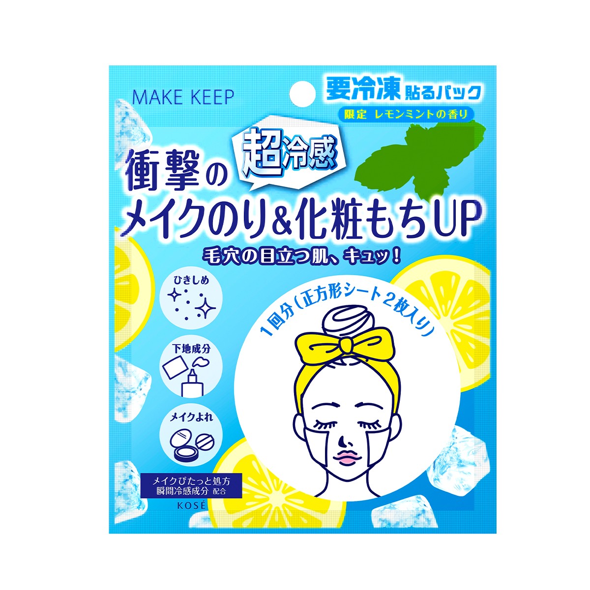 “メイクキープフローズンパック”(2枚入り、396円)は、冷凍して使用するスクエア型のシートマスク。メイク前に使うと、冷凍された美容液と瞬間冷感成分が毛穴をキュッと引きしめ、メイクのりと化粧もちをアップさせる。さわやかで甘さ控えめのレモンミントの香りが、夏の爽やかなメイク時間を演出する。
