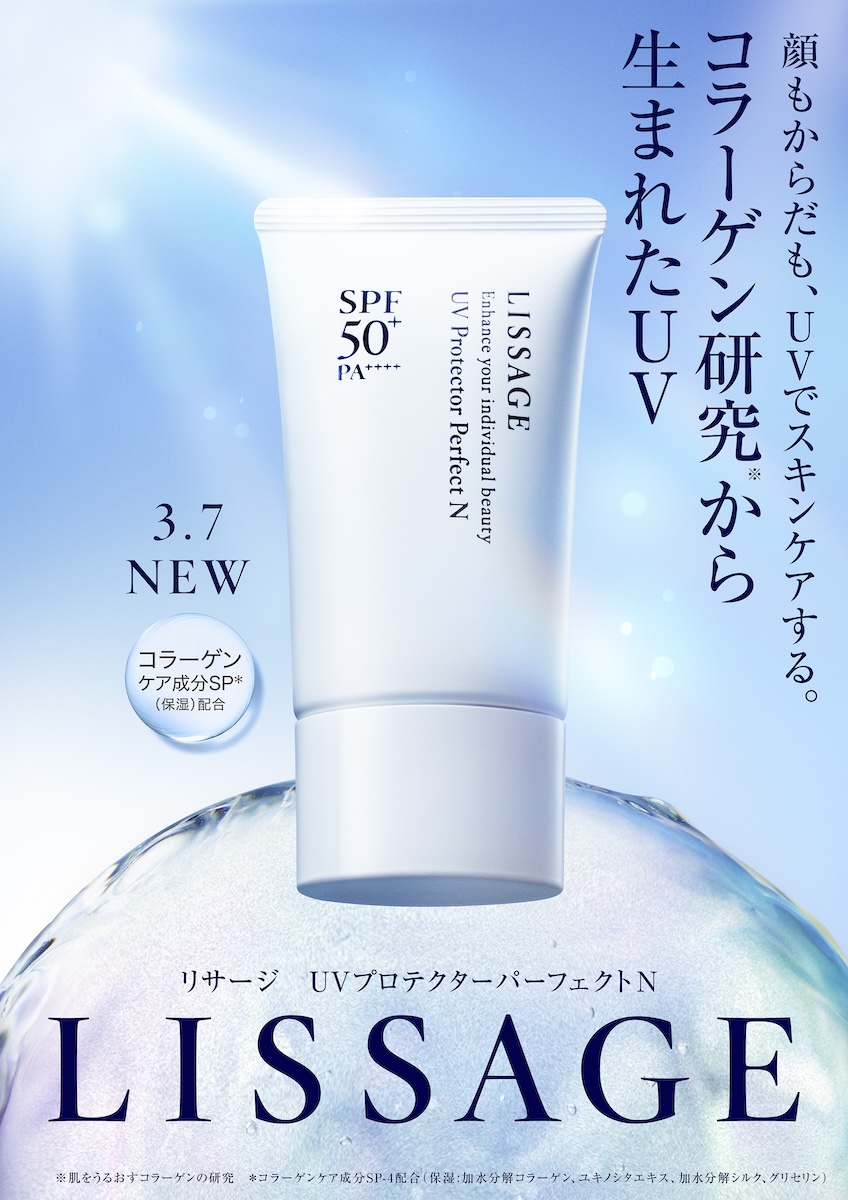 カネボウ化粧品のスキンケアブランド「リサージ(LISSAGE)」は、2019年の発売以降支持されてきたUV製品をパワーアップさせたスキンケアUV“UVプロテクターパーフェクトN”SPF50+・PA++++ UV耐水性★★](50g、3630円)を3月7日に発売する。40年以上のコラーゲン研究から生まれた顔・ボディー用の日やけ止めジェル状クリームで、紫外線や乾燥から肌を守り、1日潤ういハリ艶肌へ導く。