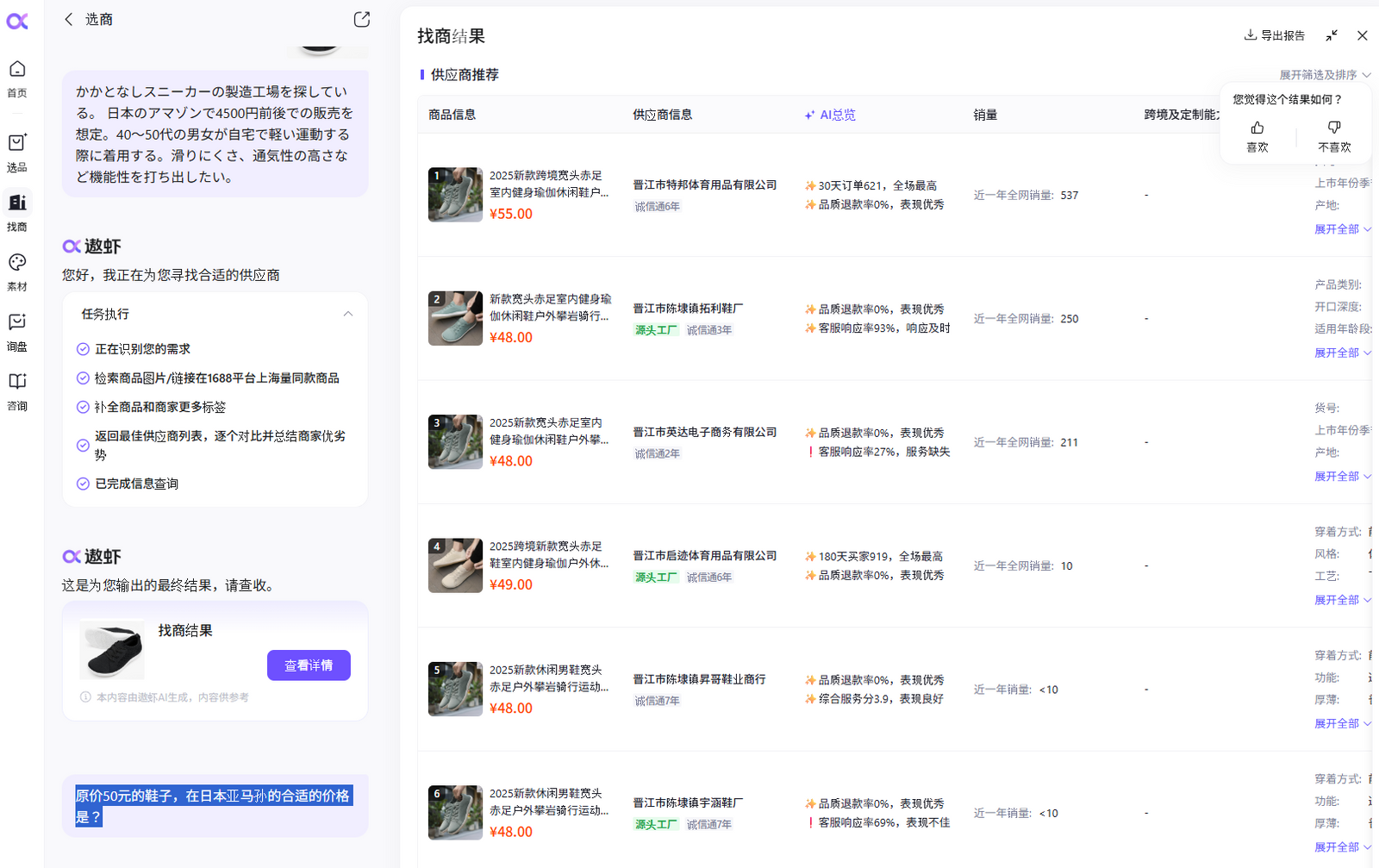 ここまでほんの5分程度で、日本語しか使っていない。衝撃的だ。今後、AIが「中国仕入れ」や日本のネットショップの世界を大きく変える予感を覚えた。