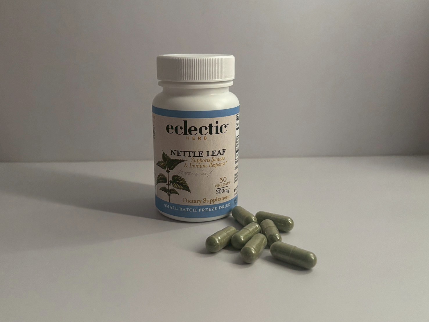 セイヨウイラクサはネトルとも呼ばれ、欧米の植物療法には欠かすことのできないハーブ。ケルセチンなどのポリフェノールが、アレルギー反応の元となるヒスタミンの働きを穏やかにしてくれるそう。「エレクティック ハーブ(ECLECTIC HERB)」は、収穫してすぐにフレッシュフリーズドライをする製法が特徴で、「アイハーブ」の中でも美容や健康意識の高い層に定評あり!