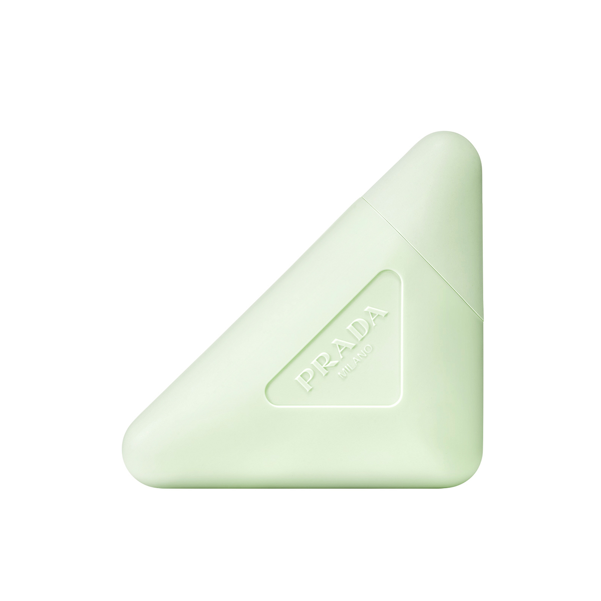 「『プラダ ビューティ』から登場したブランドを象徴するグリーンとトライアングルで持ち歩きたくなるビジュアルが人気の理由。プレゼントにも人気」(二ノ宮麗子・高島屋 MD本部 化粧品担当バイヤー)