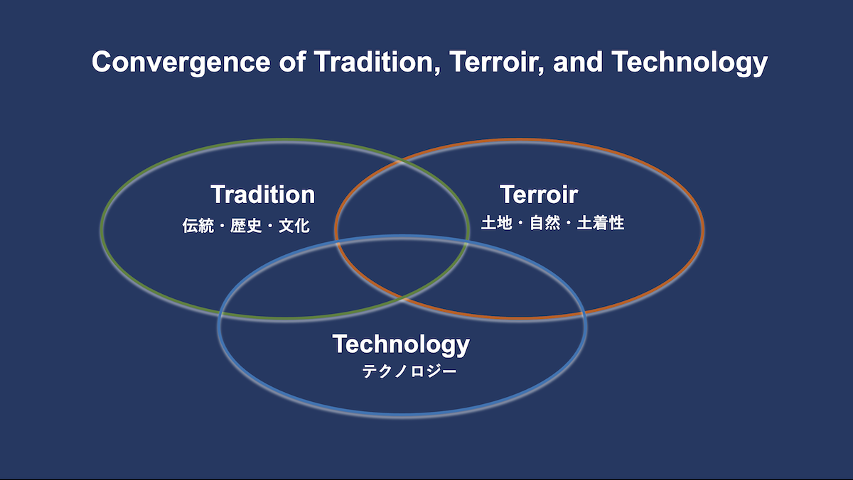 技術開発が激化するなかで、日本は何を強みとして世界と勝負するのか。その問いの答えのひとつが、歴史や伝統、文化、そしてテロワールといった「お金では買えない価値」に技術を投入して新しい価値を生むことにある。