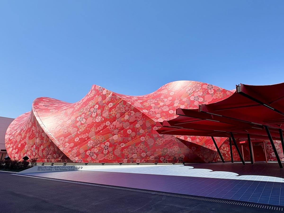 その象徴的な例が、昨年の大阪・関西万博でのプロジェクトです。全長65メートル、高さ13メートルの企業パビリオンの外壁を織物で包み込むという試みで、西陣1200年の歴史の中でも前例のないスケールとなりました。約5000メートルもの織物によって建築を構成しました。