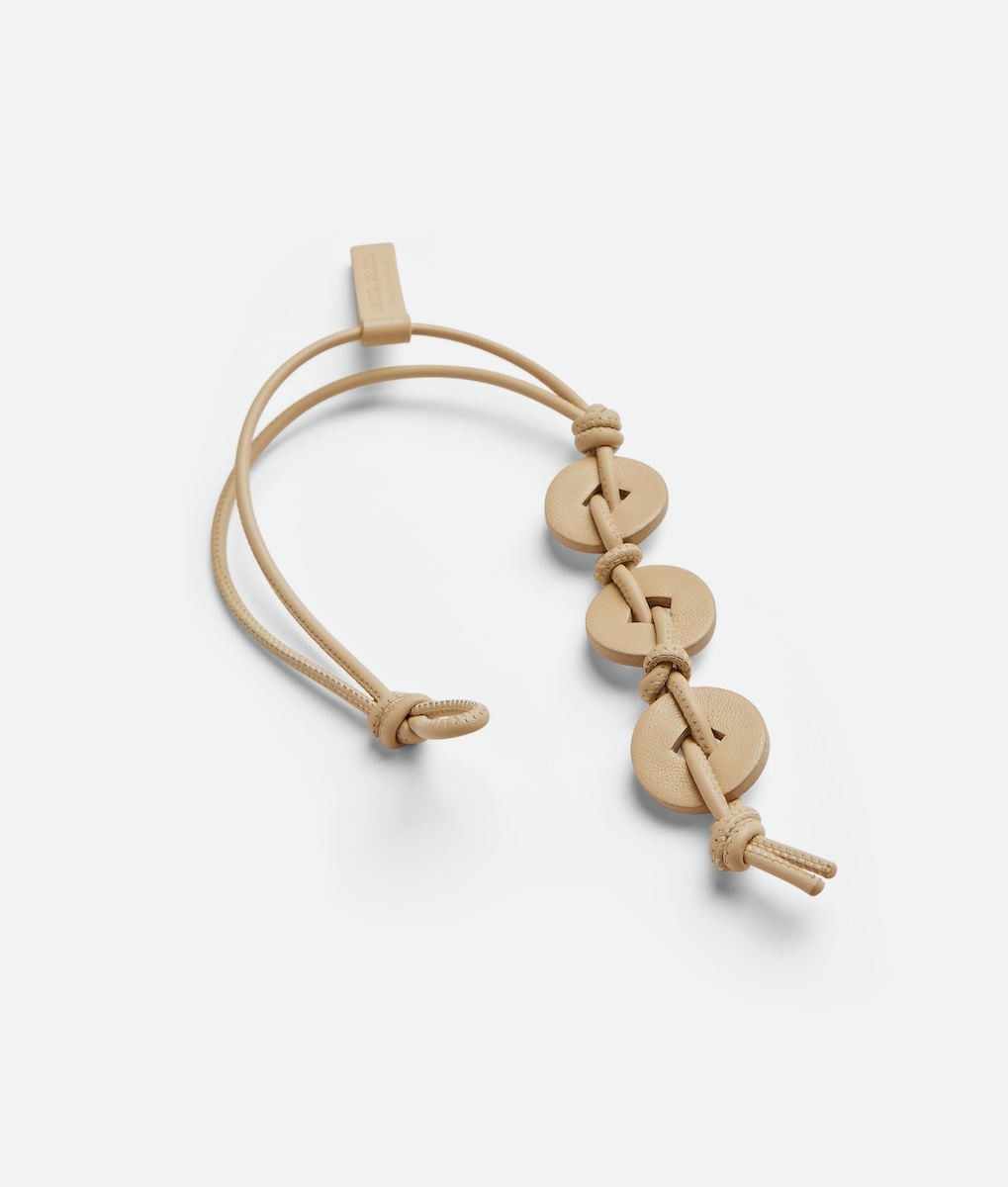さらに、公式オンラインストアでは財布、カードケース、コインパース、および一部のレザーグッズを購入した人に、3つのコインを編み込んで繋いだ特製レザーチャームを数量限定で用意する。古代のお守りに着想を得たラッキーコインモチーフは、幸運の象徴としてデザインされている。本チャームは、モンテベッロのアトリエで生まれた余剰レザーを採用した。予約注文は対象外で、2色のカラーはランダムで発送する。