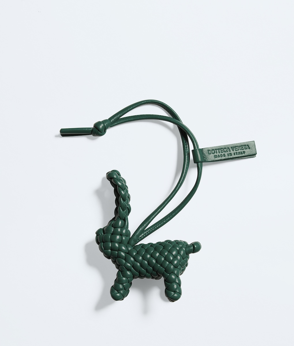 イントレチャートの技法を、動物モチーフで表現したチャームファミリーにラビット(10万6700円)が加わった。すべて手作業でチューブ状のカーフレザーコードを丁寧に編み上げることで、耳や尾まで繊細に表現された立体的なフォームを生み出している。