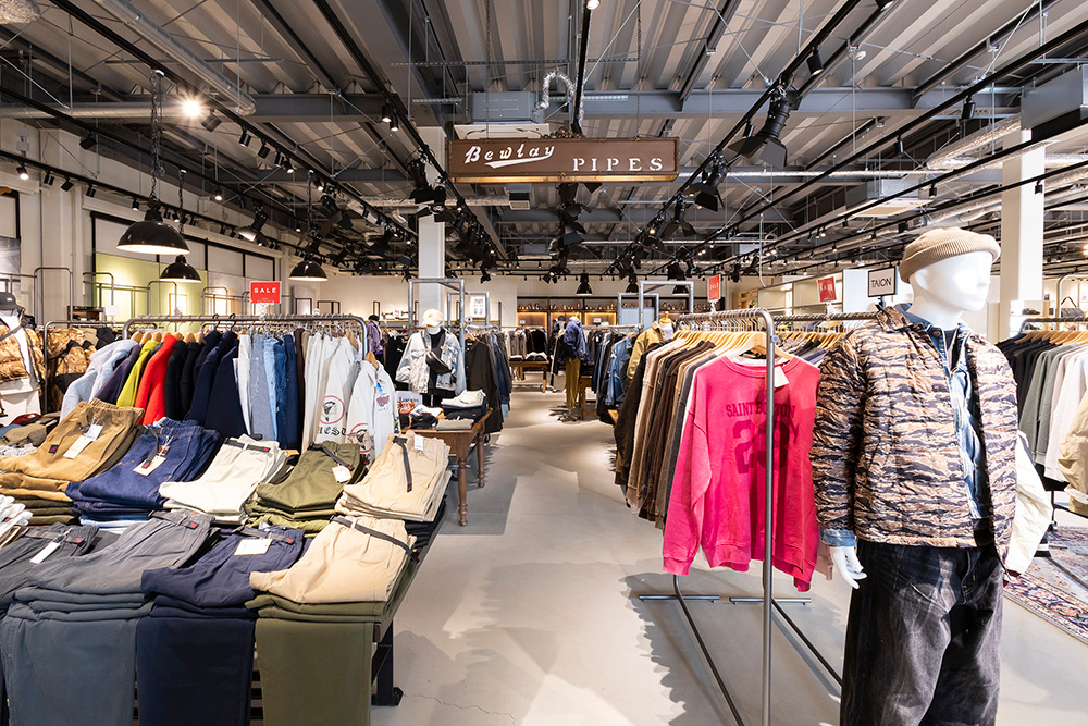1973年に奈良で創業し、近畿エリアを中心に11店舗を展開する「ジェオグラフィー」。2025年3月、イオンモール四條畷の隣接地に誕生した四條畷店は、約810㎡の広さを誇る大型路面店だ。目を引くのは、アメリカ西海岸をほうふつとさせる外観と、シンボリックな鉄塔看板。モザイクタイルを敷いたエントランスを入ると、インダストリアルな照明が灯る広いフロアに、常時150〜200ものブランドが並ぶ。車で来店する40〜50代から、イオンモールから回遊する20代まで客層は幅広いが、ニーズをていねいにくみ取りながら、「マルニ(MARNI)」「メゾン マルジェラ(MAISON MARGIELA)」といった感度の高いブランドも開拓してきた。また、ジーンズ専門店「三信衣料」をルーツに持つことから、国内外のデニムブランドの圧倒的な品ぞろえも自慢の一つだ。「ヤヌーク(YANUK)」はウィメンズ、メンズともに全サイズで展開。一人ひとりの体形や好みのサイズ感を聞きながら、プロの目線による提案を重視している。(この記事は「WWDJAPAN」2026年2月23日号からの抜粋です)