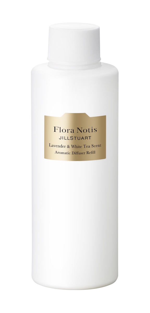 "ラベンダー&ホワイトティー"は、ラベンダー精油を配合した穏やかなティータイムを思わせる心安らぐ香り。トップノートにはリーフィーグリーン、ミドルノートにはラベンダー、ミュゲ、ローズ、ティー、ラストノートにはムスク、ドライアンバーを配した。空間にみずみずしさをもたらす爽やかなリーフィーグリーンに、ラベンダーやミュゲなどのフローラルとティーが織りなす清潔感に満ちたピュアな印象を演出する。