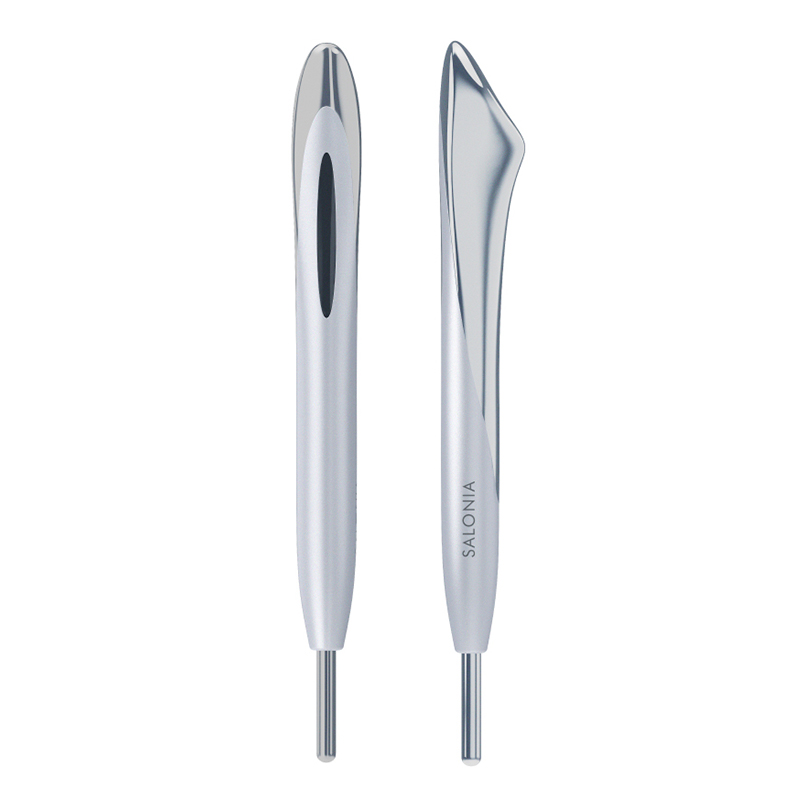 同製品は、最適なバネ圧力を備えたクッションスティックが、硬くなりがちな筋膜を刺激するフェイスポインター。心地よい強さに設計され、デリケートな顔にも使いやすい。もう一方のカッサは小回りの利くサイズで、フェイスラインや首元へのアプローチも可能だ。さらに、スティックとカッサの両端から微弱電流“マイクロカレント”を発生させ、リフトケアをサポートする。ハンドル部分にはソーラーパネルを搭載し、光を取り込むことで充電不要を実現した。