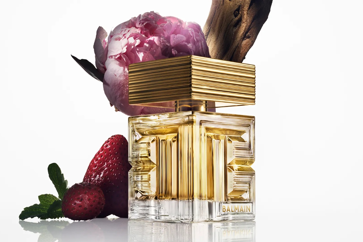 ボトルにはキューブ型を採用し、レフィル(詰め替え)に対応する。創業者であるピエール・バルマン(Pierre Balmain)のイニシャルである“PB”のモノグラムを刻印し、ブランドを象徴するラビリンス(迷宮)モチーフをデザインした。その隙間からゴールドのフレグランスがのぞく。キャップにはブランドコードの一つであるストライプ状の装飾を施した。ウルフ=バルマン ビューティ グローバル暫定ゼネラルマネジャーは、「『バルマン』の女性像は大胆で妥協しない存在」といい、本作はその鮮やかさでブランドの女性像を体現していると話す。
