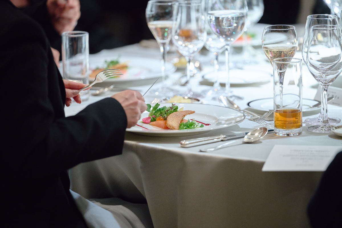 全セッション終了後には、フルコースディナーとともに歓談タイム。さらに食後、テーブルを超えて登壇者や参加企業の経営層同士が交流する時間を設けた。気になる課題についてヒントがもらえそうな登壇者に直接意見を求めたり、普段接する機会のない企業の経営者にアプローチができたりと、参加者は充実した時間を満喫。終了後のアンケートには高い満足度が表れる会となった。