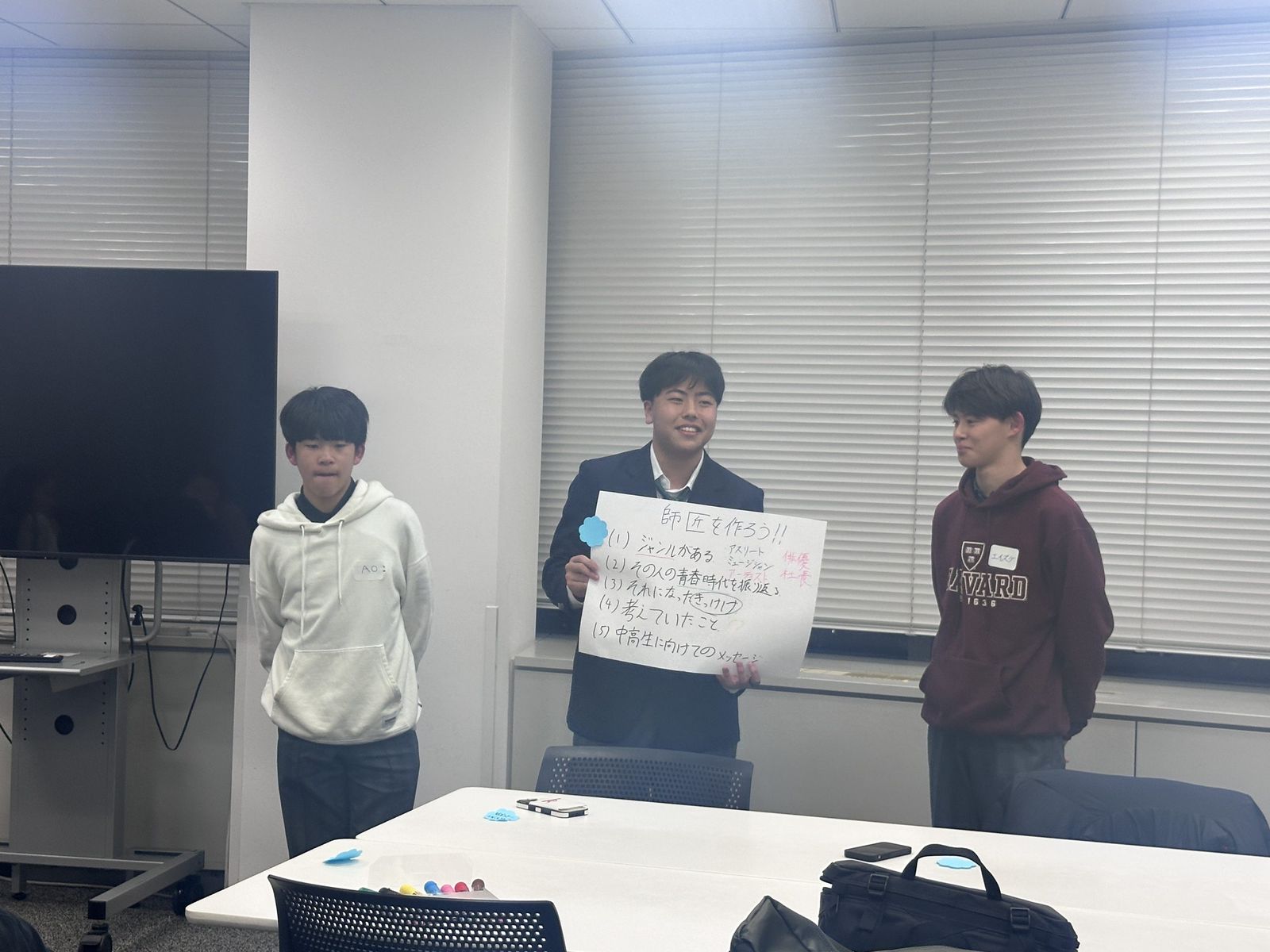 そして最後に、「中高生向けのエンタメを考えてみる」というFFiならではのテーマに沿って、中高生4、5人のグループでアイデアを出し合った。15分という短い時間の中であったものの、中高生の柔軟なアイデアが数多く見られた。中学生チームは「師匠を作ろう」というテーマのプログラムを発案。さまざまな分野のプロに密着し、青春時代や人生の転機などについて深堀りするという内容で、中学生ならではの関心が表れているアイデアであった。