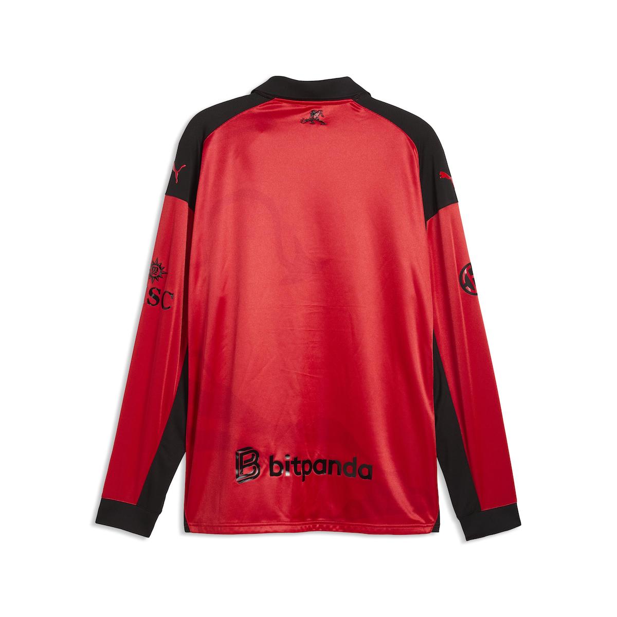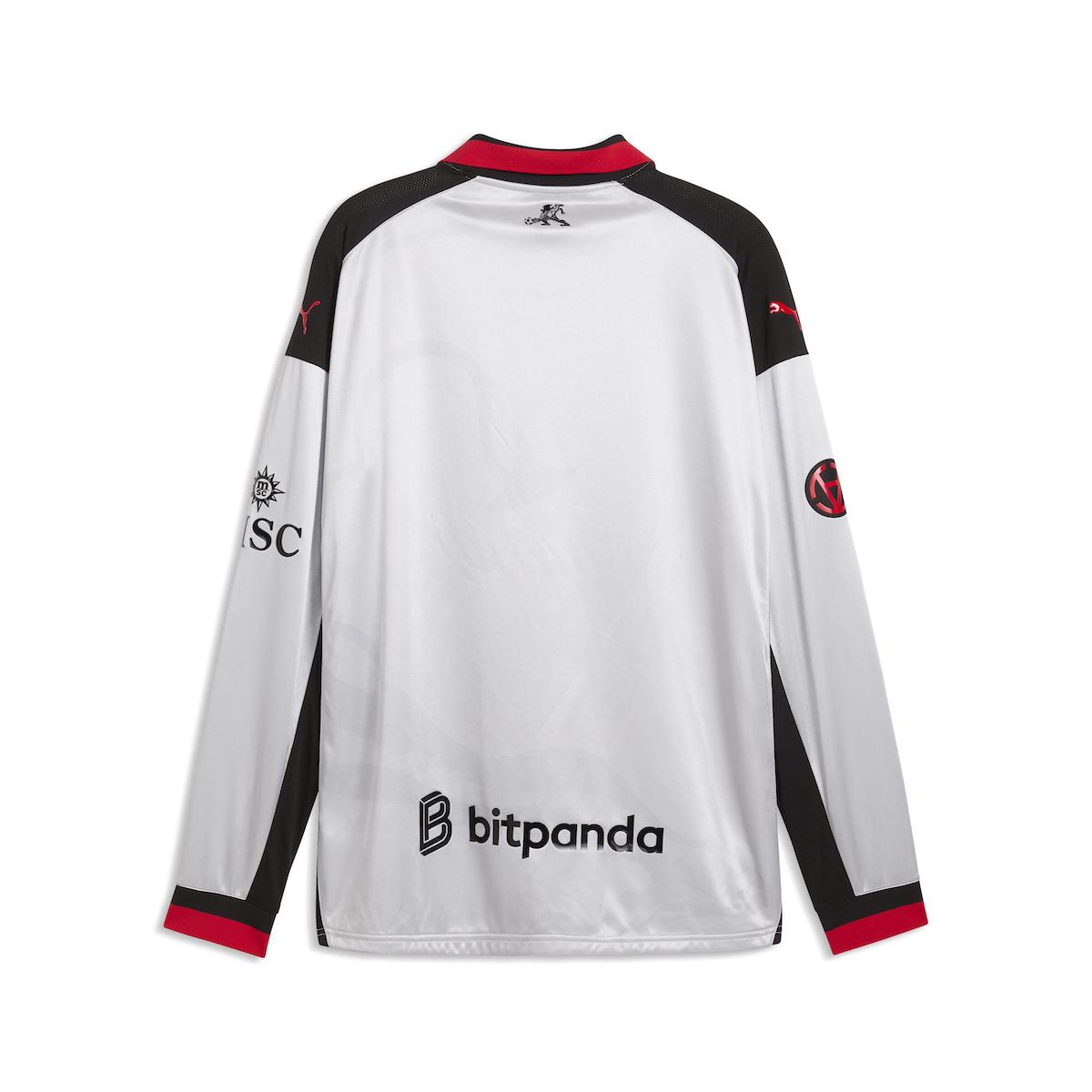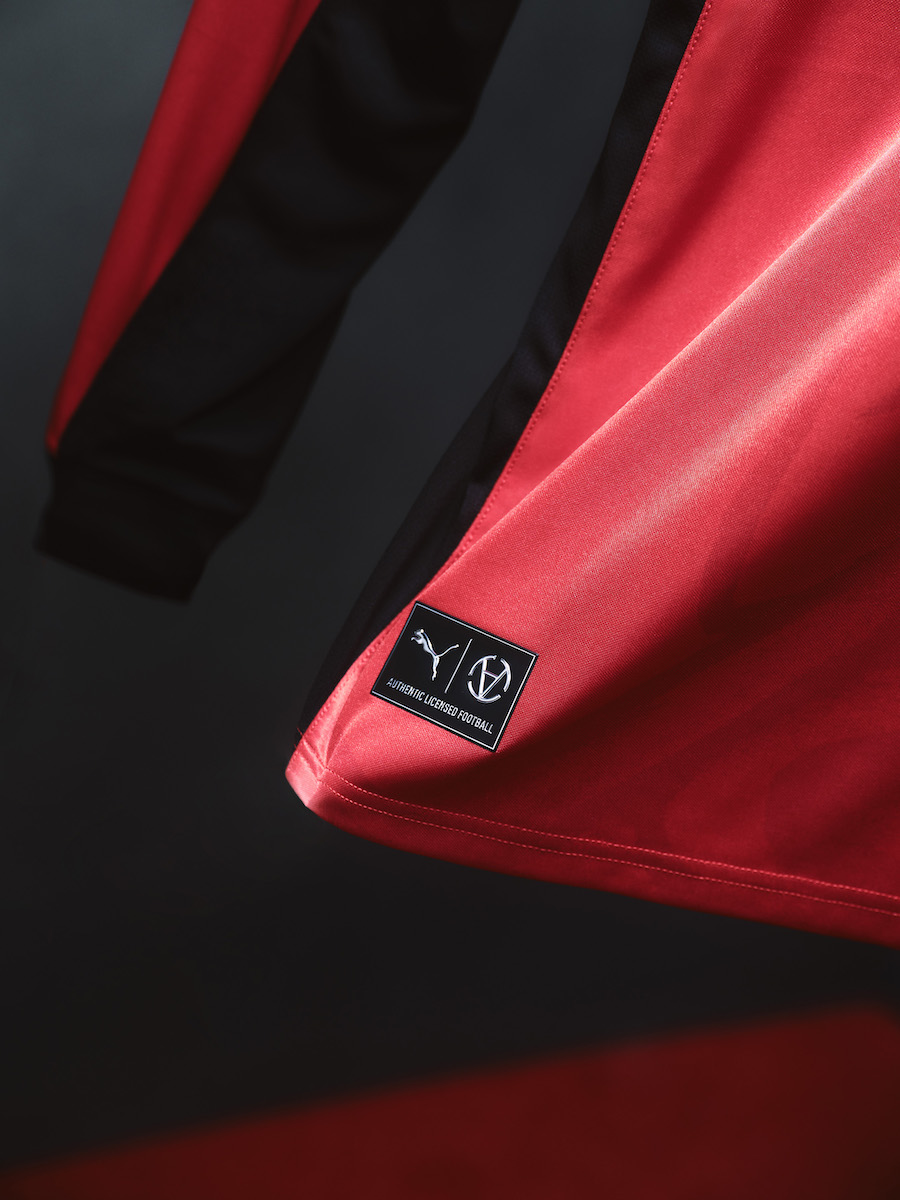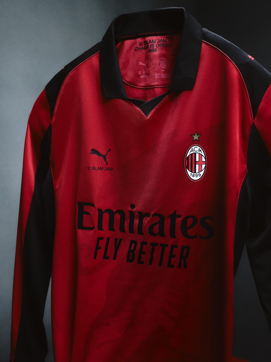今回のトリプルコラボコレクションは、“地獄へようこそ(Benvenuti all’Inferno)”を掲げ、ACミランの本拠地「サン・シーロ」の熱狂および、クラブとサポーターが生み出す強い結束を表現した。アイテムは、2025/26シーズンのフォースユニホームを中心に、ジャケットやトラックパンツ、マフラー、キャップなどをラインアップ。フォースユニホームは、通常版とリミテッド版を用意し、フィールドプレーヤー向けのレッドとゴ ールキーパー向けのシルバーの2カラーを展開。どちらもグロッシーな質感に仕上げ、クラブを象徴するデビルモチーフのグラフィックを大胆にあしらっているが、リミテッド版のみ内側のライニングにガーゴイルフェイスの隠しデザインを配したほか、カスタマイズ可能なパッチやスペシャルデザインのバッグが付属する。価格は、フォースユニホームの通常版が2万2000円、フォースユニホームのリミテッド版が3万800円、ジャケットが2万9700円、マフラーが7700円、キャップが6600円だ。