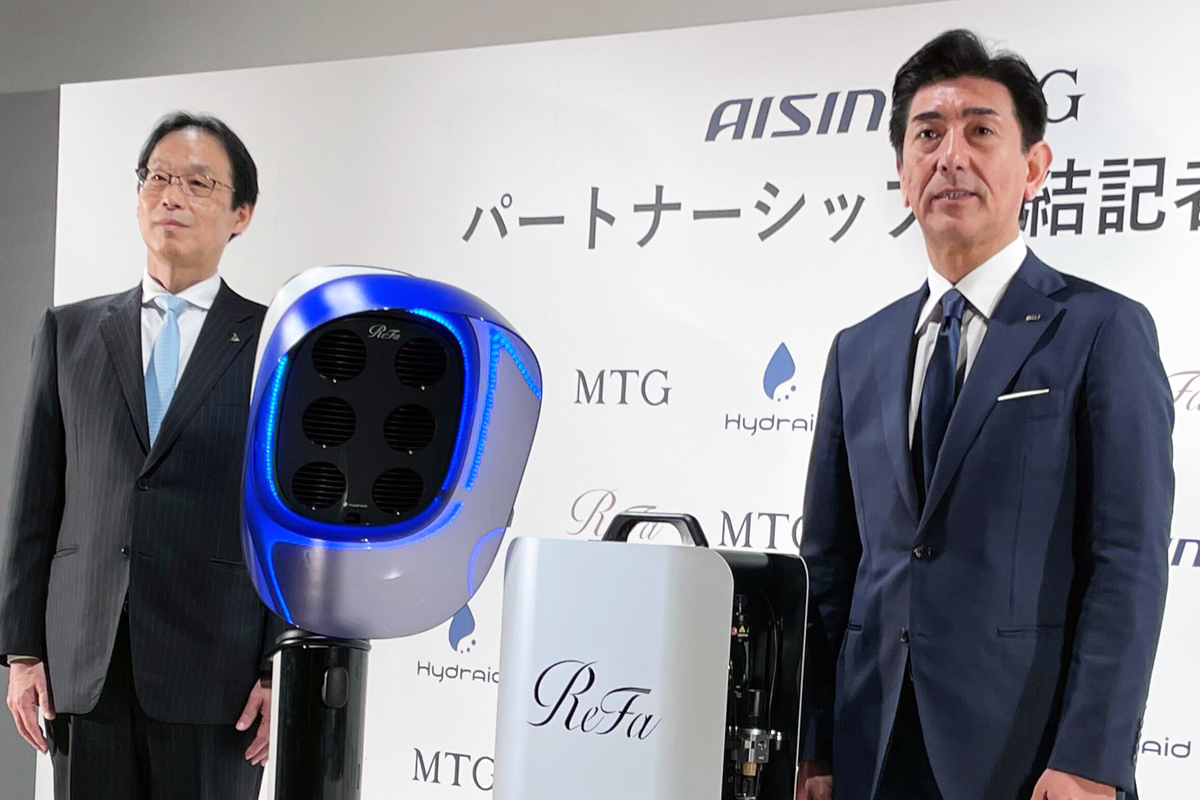 MTGは26日、自動車部品大手アイシンとパートナーシップ契約を締結したと発表した。同社の水分テクノロジー「ハイドレイド」を活用し、美容ブランド「リファ(REFA)」で展開する業務用機器 “リファハイドレイド”を共同開発した。美容サロン向けの従量課金制ビジネスモデル「スマートプラン」を通じて4月1日から出荷する。サロンは貸与機器の使用料に応じて料金を支払う。