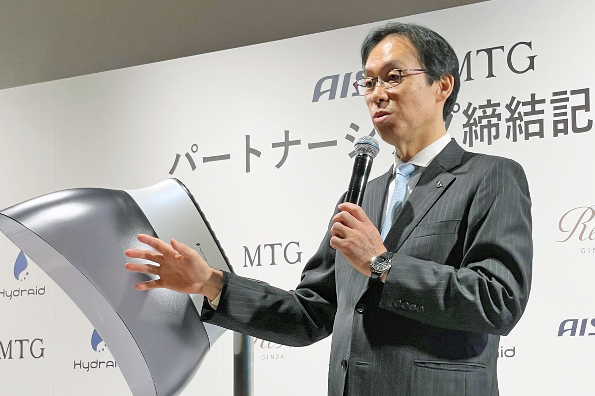 七原弘晃アイシン執行役員は、美容領域参入の背景について「自動車部品で培った技術を生かし新規事業を強化する。その柱の一つがハイドレイドだ。技術を追求する中で、健康や美容に価値を提供できる確信に至った。二社の強みを掛け合わせ、新たな市場価値創出を目指す」と語った。