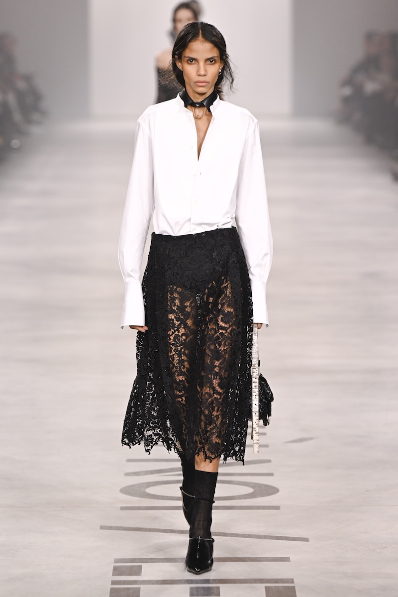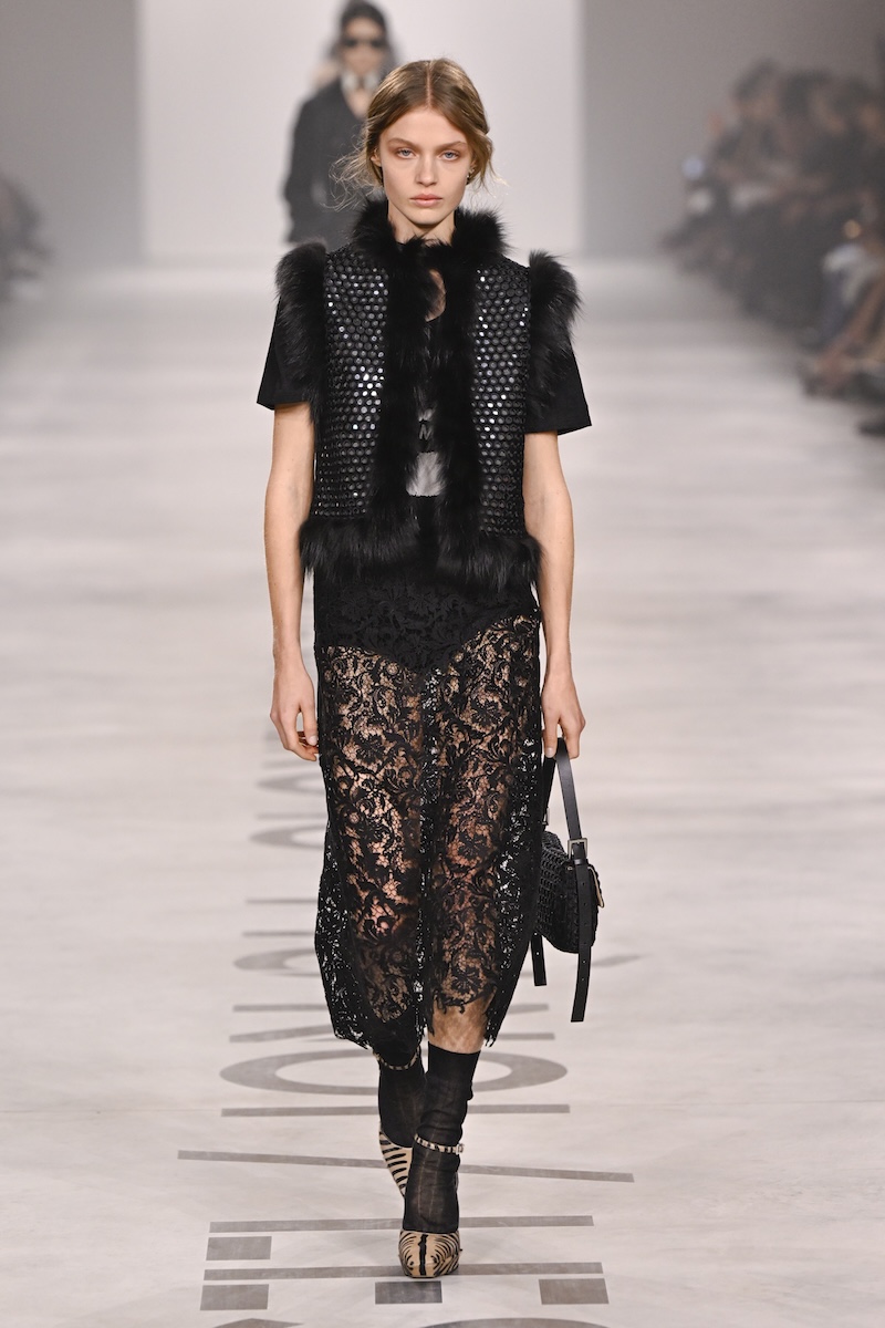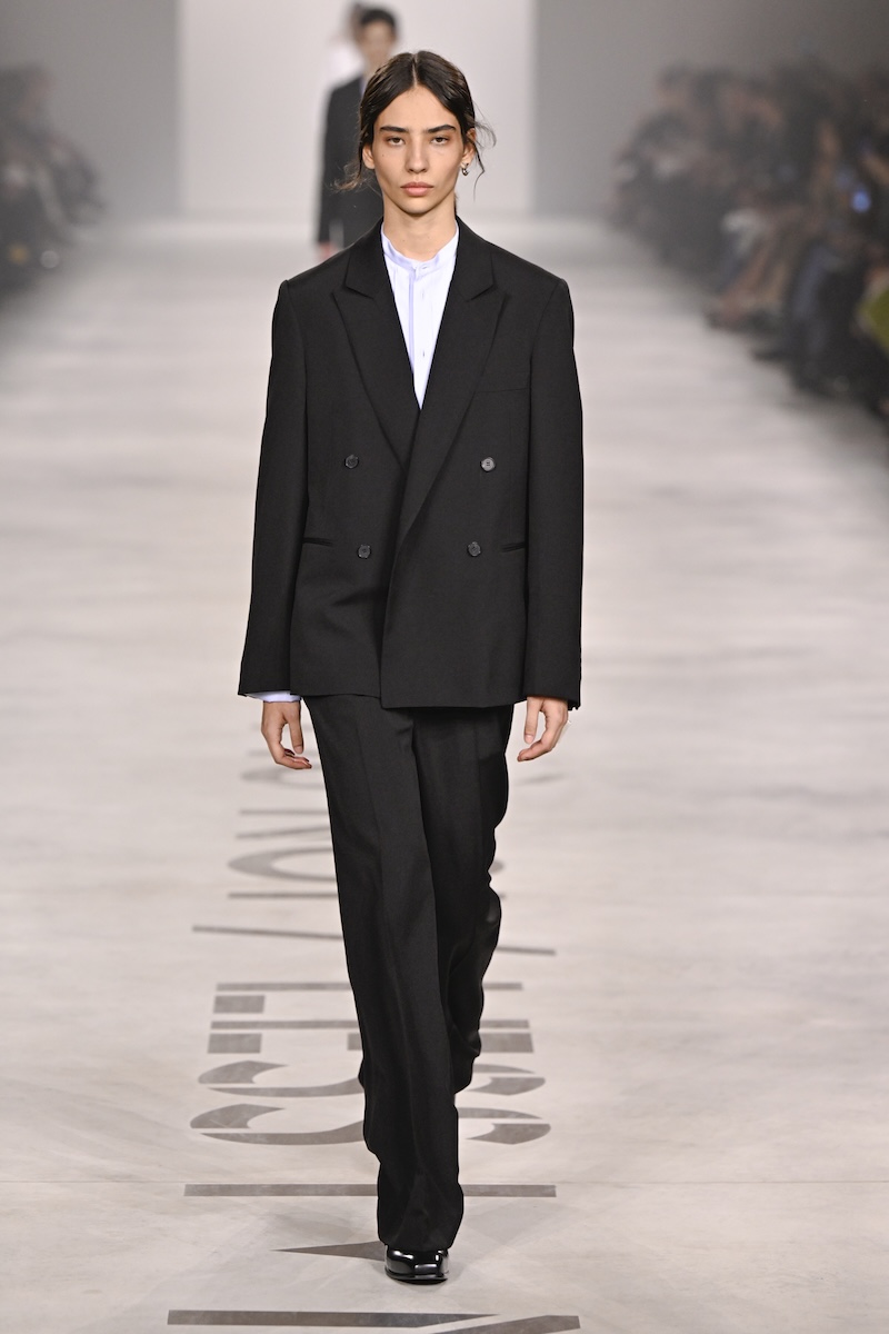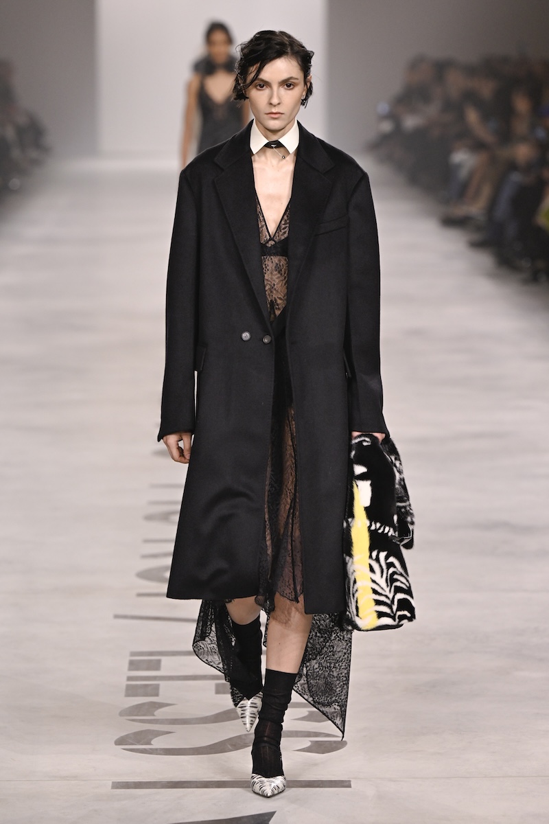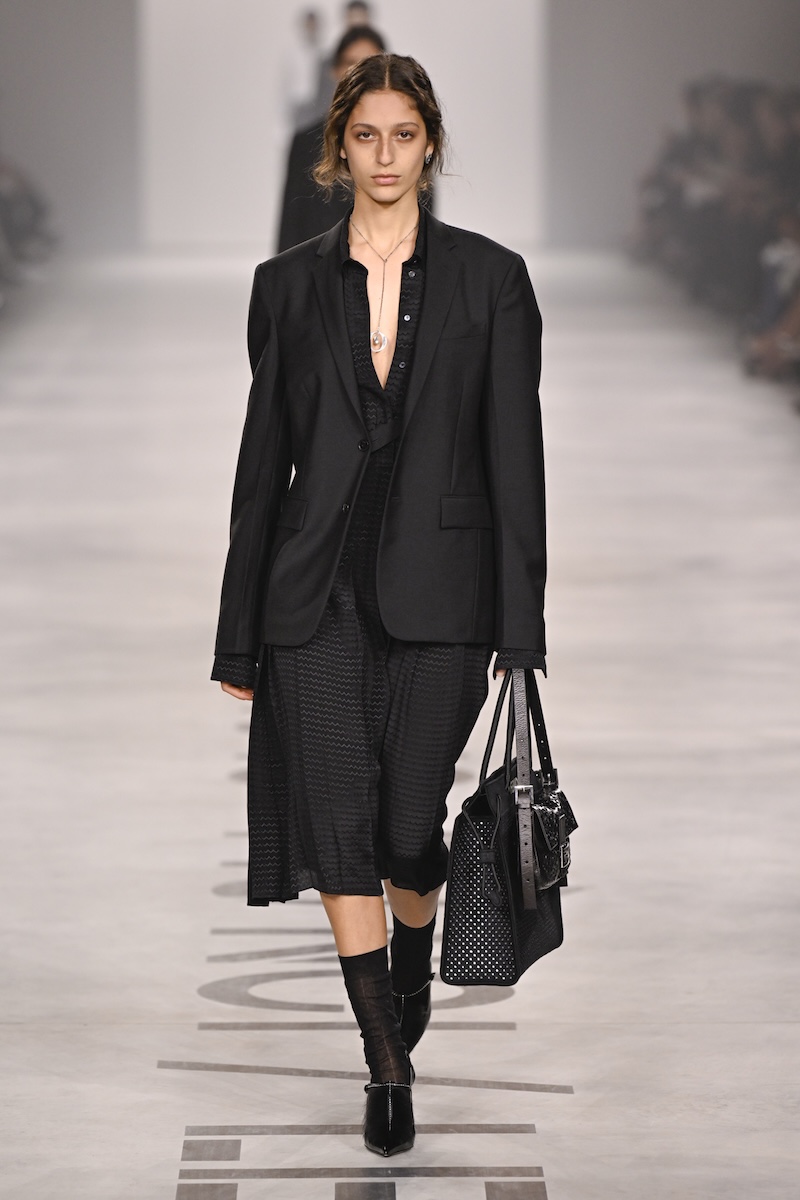 新生「フェンディ」は、無駄のないジャストサイズのテーラードで幕を開けた。従来のポップさやガーリーさは感じず、芯のある強い女性像を明確に立ち上げる。