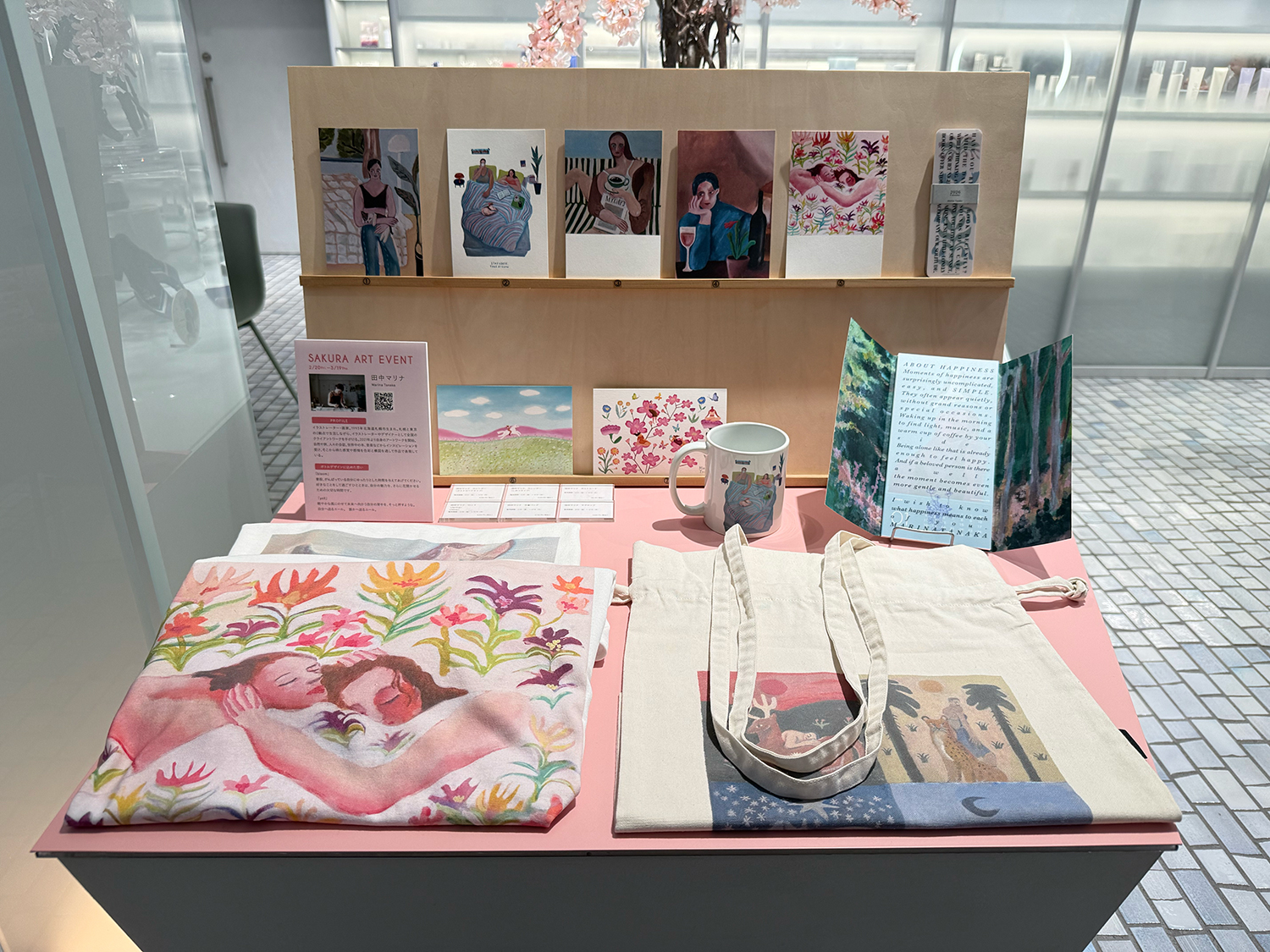 3月14、15日には、田中マリナによるワークショップを開催する。14日は、田中マリナがその場で世界に一つだけの絵を巾着に描くライブペインティングを実施。15日は、田中マリナのアドバイスのもと参加者が桜をテーマにキャンバスに絵を描くアート体験企画を提供する。参加費は各5500円で、専用サイトから参加申し込みが可能だ。