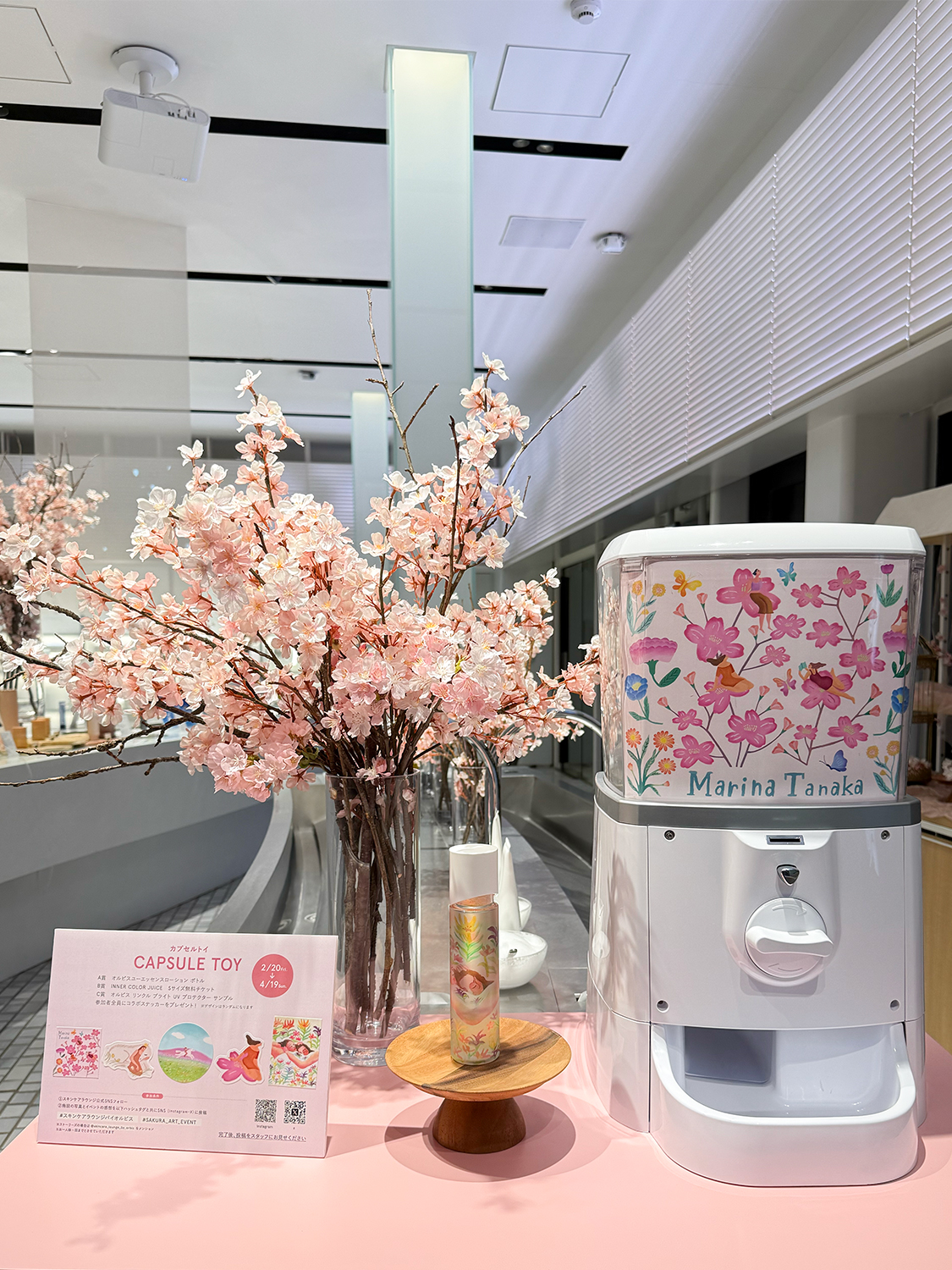 インスタグラムとXでは、施設公式アカウントをフォローのうえ指定のハッシュタグとともに本イベントの様子を投稿すると必ずプレゼントが当たるカプセルトイ企画も開催。景品として、田中マリナがデザインした非売品の“オルビスユー ボトル”や、「ジュースバー」のドリンク引き換え券、田中マリナ作品のオリジナルステッカーなどを用意する。