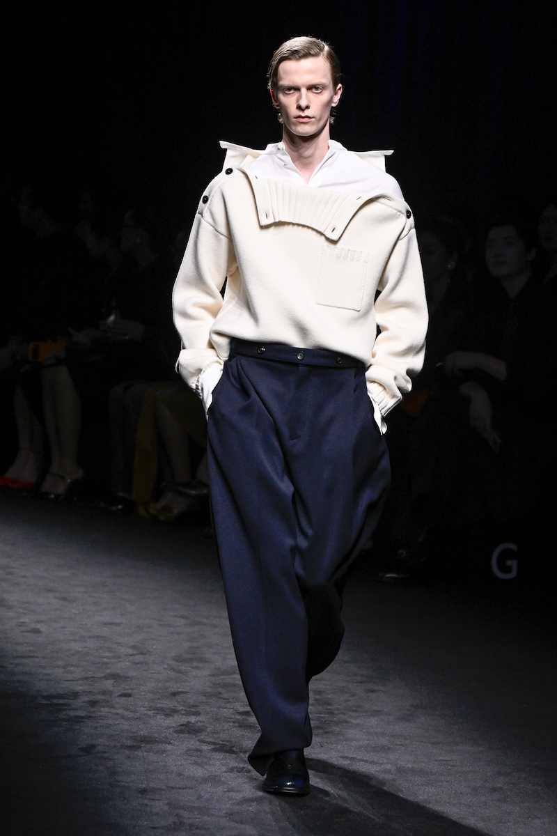 クワイエット・ラグジュアリーの潮流が続くメンズファッションでは、テーラードジャケットやコート、ミリタリーウエアやジーンズといったメンズワードローブのステイプル(定番)を基底に置いたスタイルが、引き続き提案の主軸。この間に目まぐるしく続いたデザイナー・シャッフルの様相に反して劇的な変化は見られないものの、デザイナーたちの思索の深層では、新たな価値転換が起こり始めています。