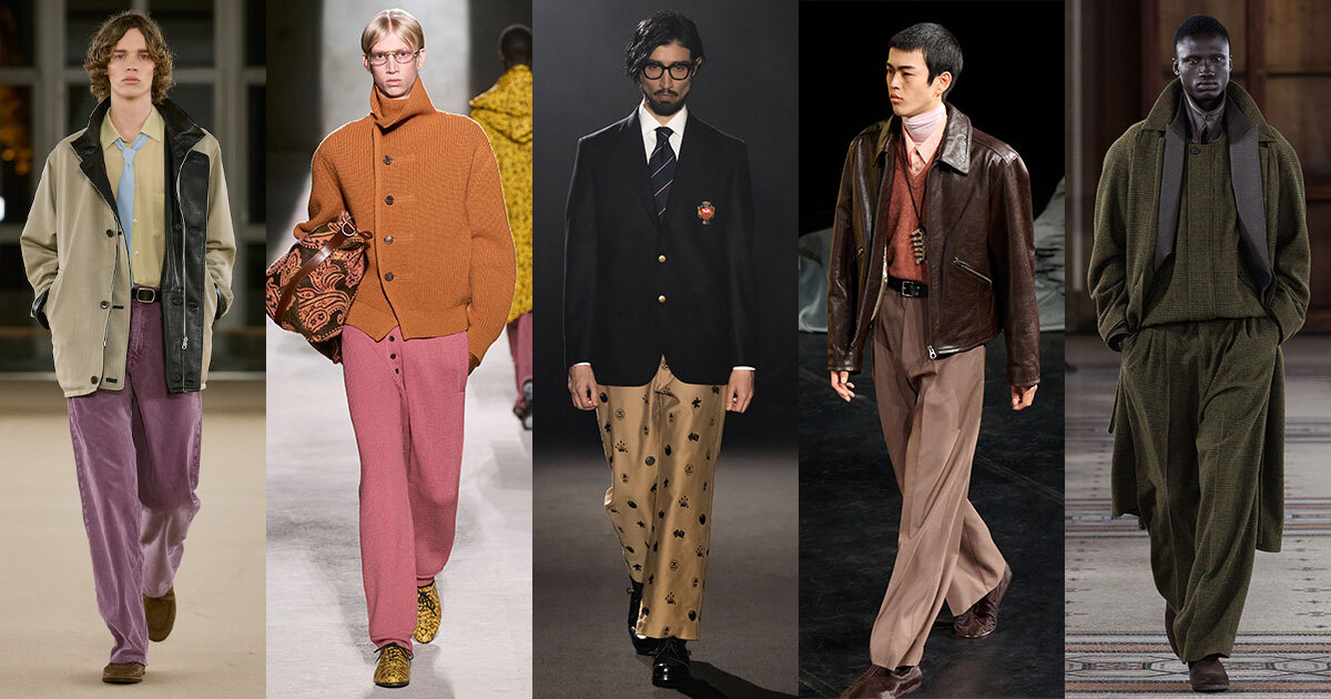 レザーとシープスキンのジャケット、豊富なカラーバリエーションのダウンジャケット、デニム、柔らかなカシミヤとチャンキーニット、タートルネック。スーツ、ダブルブレストのリラックスしたジャケット、よりフィット感のあるジャケット、ゆったりとしたフレアパンツとコーデュロイパンツ。柔らかなスエードのローファーとロープロファイルのスニーカー。
