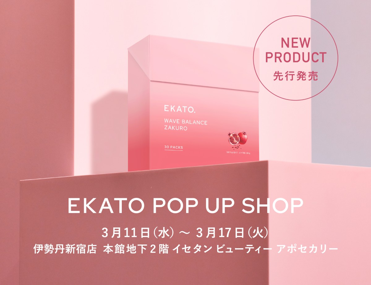プロ級のセルフケアを自宅でかなえるビューティブランド「エカト(EKATO.)」は、ブランド初となるインナーケア商品“ウェーブバランス ザクロ(WAVE BALANCE ZAKURO)”(10g×30袋、通常価格8910円/初回定期価格8287円)を発売する。