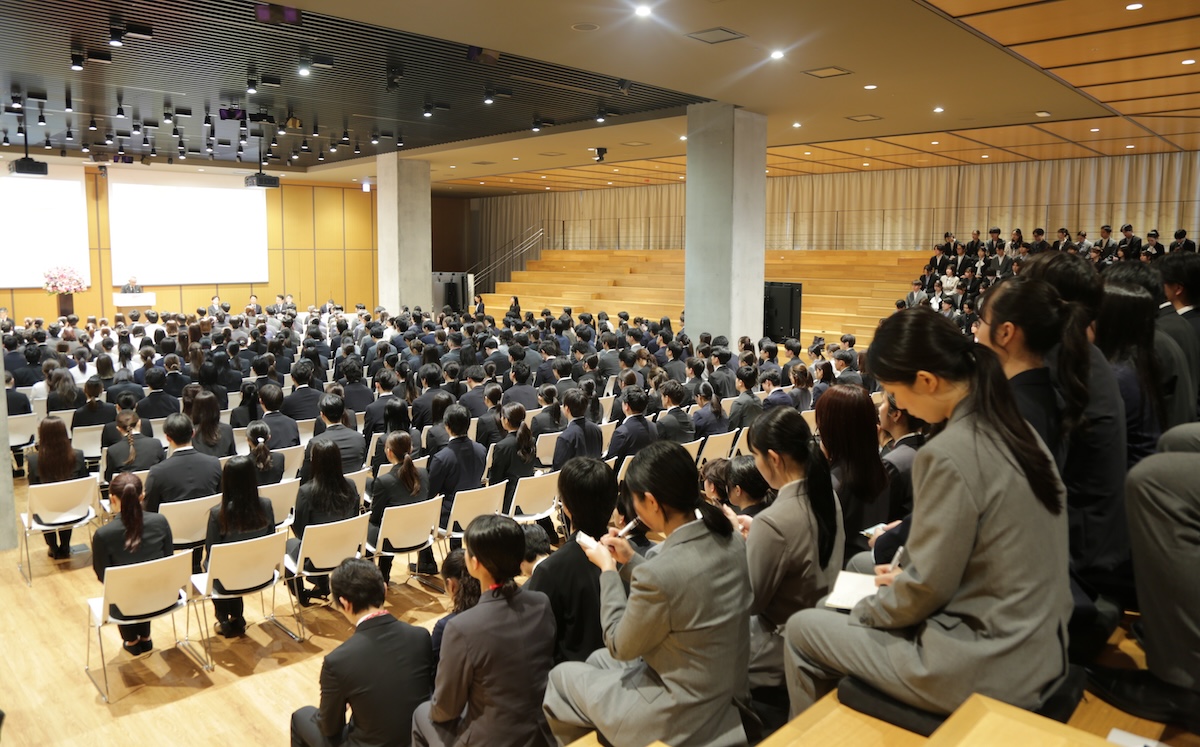 ファーストリテイリングは3日、2026年度の入社式を東京の有明本部で開催した。9月1日入社のインド・ベトナム採用の26人を含め、今年度に入社する509人のうちユニクロ、ジーユー、プラステ、セオリーのグローバルリーダー候補と地域限定社員500人が参加した。登壇した柳井正会長兼社長は「自分の運命は自分で作る。充実した人生を送るためには、目の前の出来事を部分の頭で考え、行動し、解決する。このことを忘れないでほしい」とエールを送った。