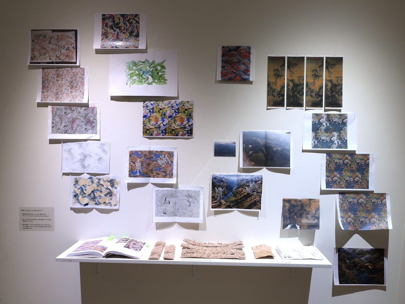 桂離宮から学んだとも言われる茶室建築のそこかしこには、昨年、4カ月に渡る欧米各国への旅で目にした風景や経験、出会いを、和紙に墨で描いた作品群を設えた。訪れた鑑賞者を、束の間、せわしない日常から切り離し、空間全体で旅へといざなっていた。なお、品川は4月8日から、大阪・阪急うめだ本店で個展「SPRING’S FLUTTERING」を控えている。本展とは異なるシリーズの作品群を展示予定とのことで、ぜひ訪れてほしい。