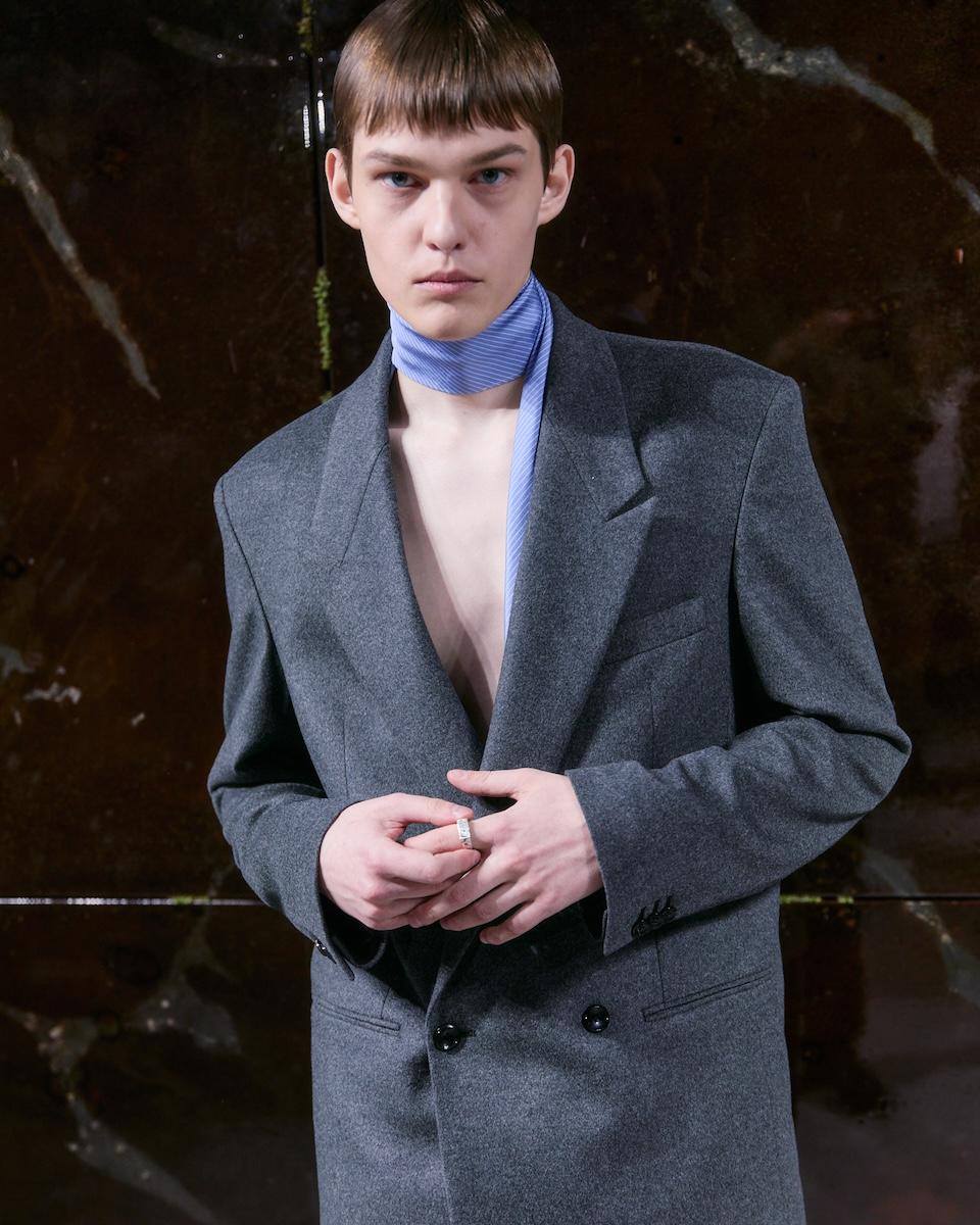 クワイエット・ラグジュアリーの潮流が続くメンズファッションでは、テーラードジャケットやコート、ミリタリーウエアやジーンズといったメンズワードローブのステイプル(定番)を基底に置いたスタイルが、引き続き提案の主軸。この間に目まぐるしく続いたデザイナー・シャッフルの様相に反して劇的な変化は見られないものの、デザイナーたちの思索の深層では、新たな価値転換が起こり始めています。