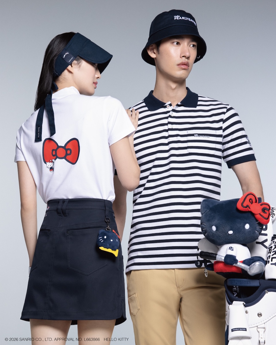 本コレクションは、“「パーリーゲイツ」といつでも一緒、ハローキティ”というコンセプトのもと、ゴルフはもちろん日常でも使いたくなる幅広いアイテムを用意する。ハローキティの赤いリボンが“P”と“G”になっているなど細部に「パーリーゲイツ」の遊び心が込められたデザインを施している。